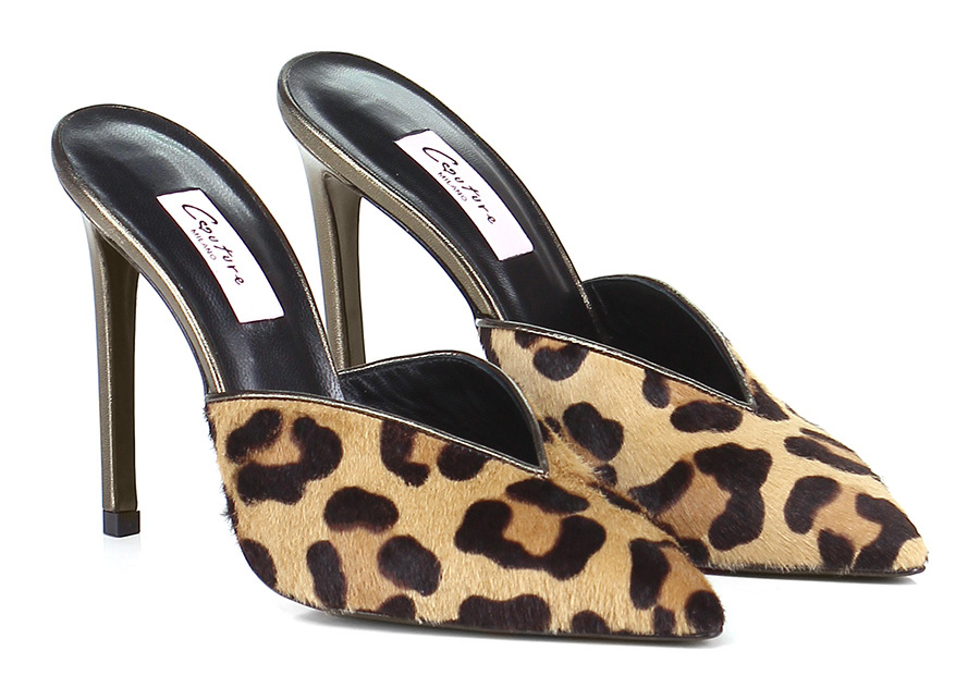 Scarpa con tacco in cavallino e pelle laminata con suola in cuoio e gomma. Tacco 115.
