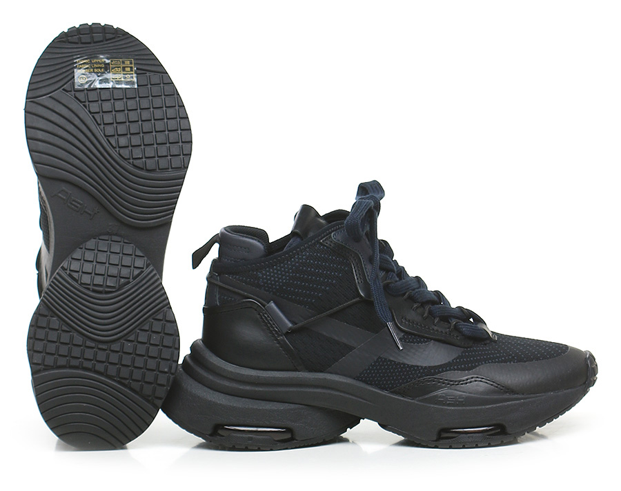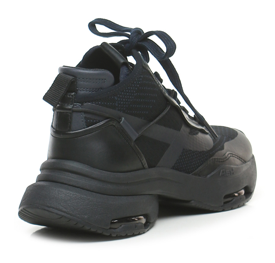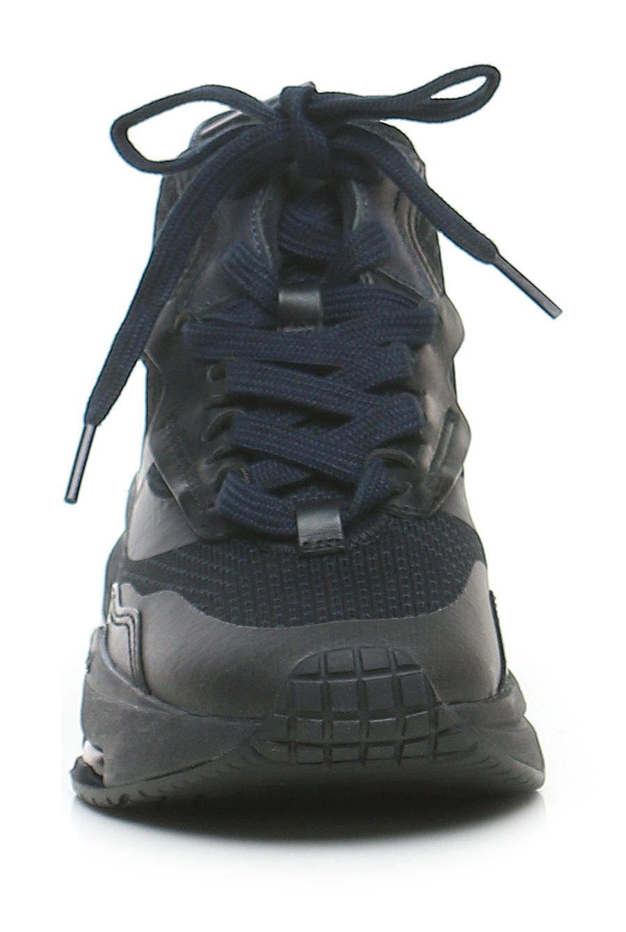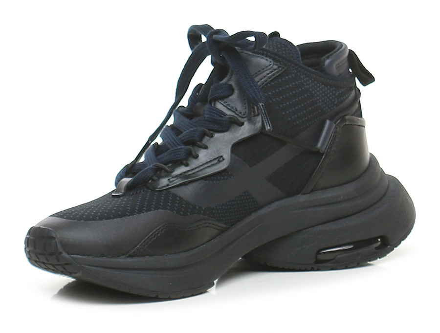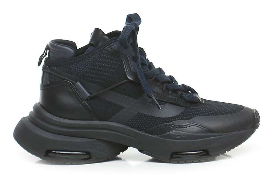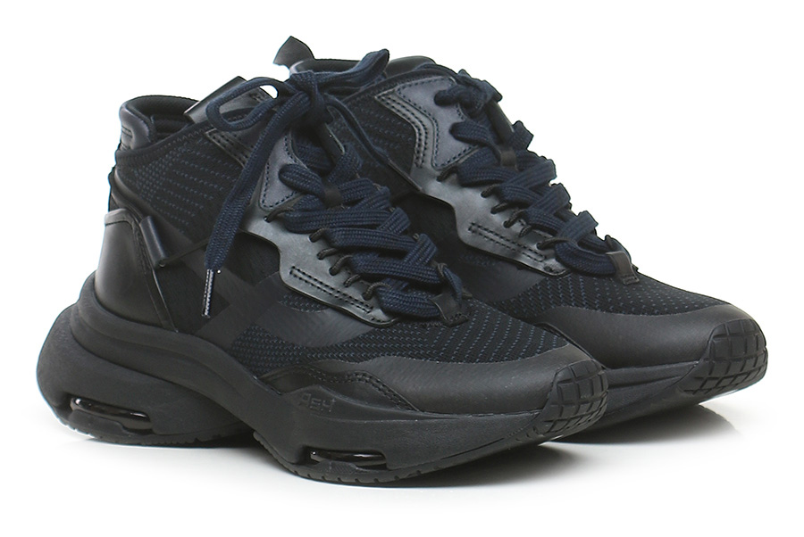 Sneaker in tessuto con inserti in pelle. Suola in gomma over size. Altezza tacco 50mm, platform 30mm con battuta 20mm.