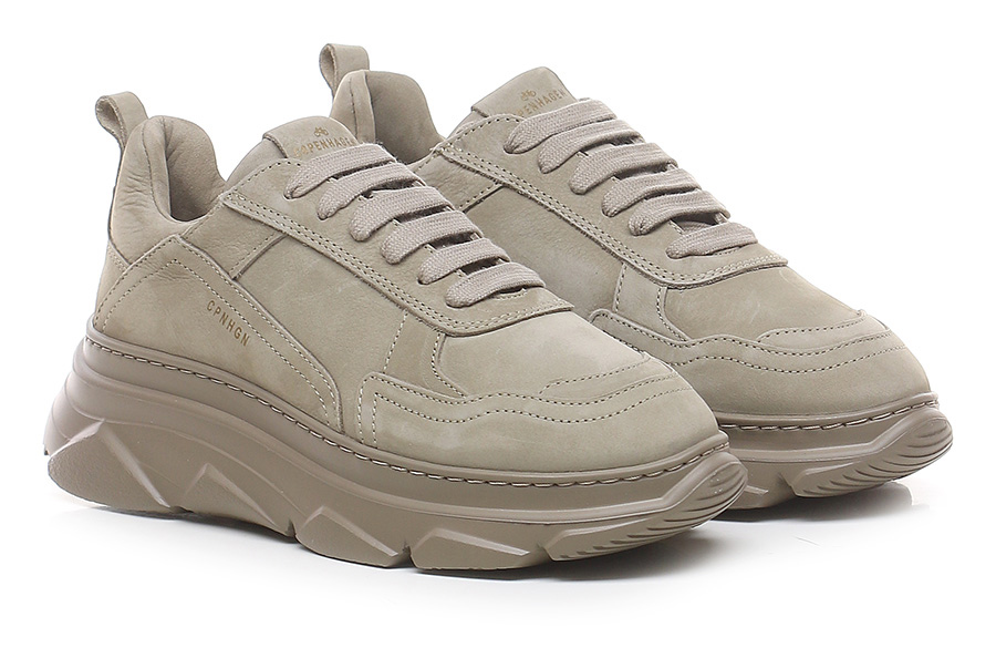 Sneaker in nabuk con suola in gomma. Altezza tacco 50mm, platform 25mm con battuta di 25mm.