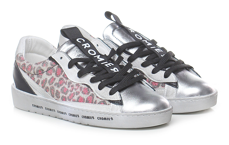 Sneaker in glitter con inserti in pelle, linguetta e puntale in pelle laminata, suola in gomma. Altezza suola: 30, platform 20 con battuta 10. Logo lettering frontale.