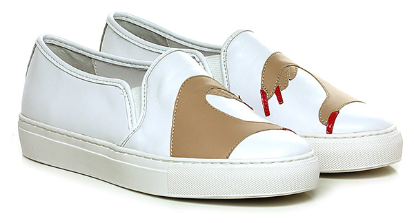 Sneaker in pelle con inserto elasticizzato su ambo i lati ed applicazione frontale. Suola in gomma, tacco 30. Calzata abbondante.