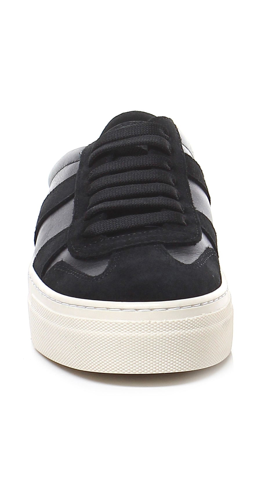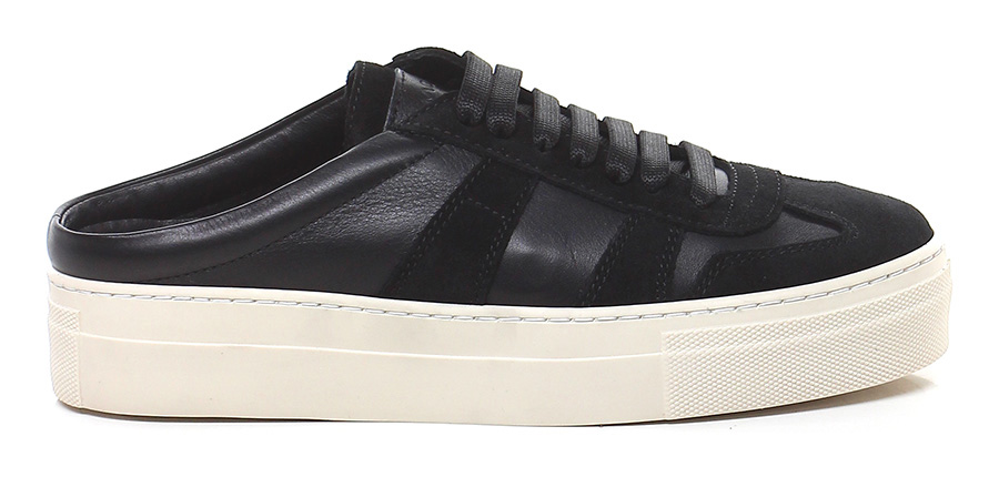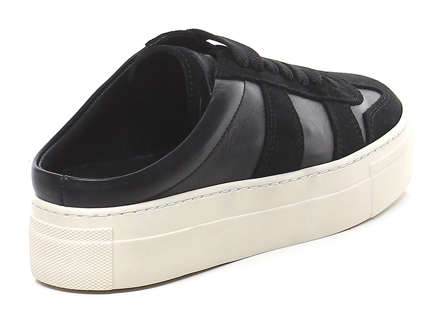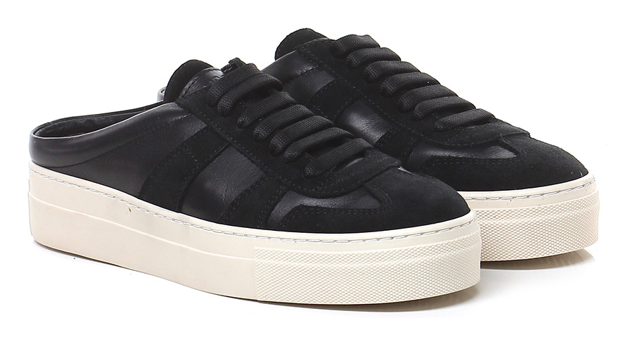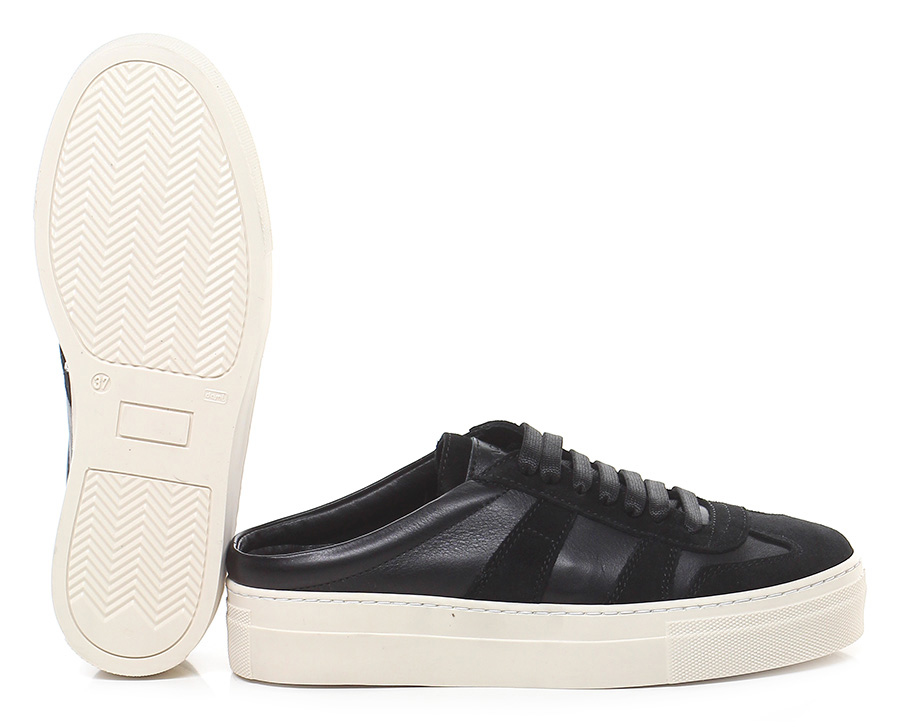 Sneaker in pelle e camoscio con suola in gomma. Tacco 35, tallone aperto.