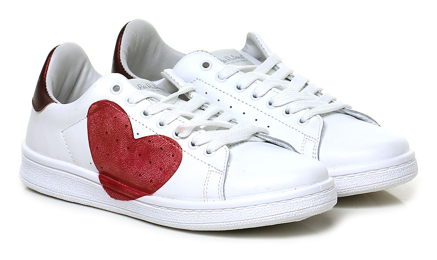 Sneaker in pelle e pelle laminata con suola in gomma. Tacco 30, platform 20 con battuta 10.