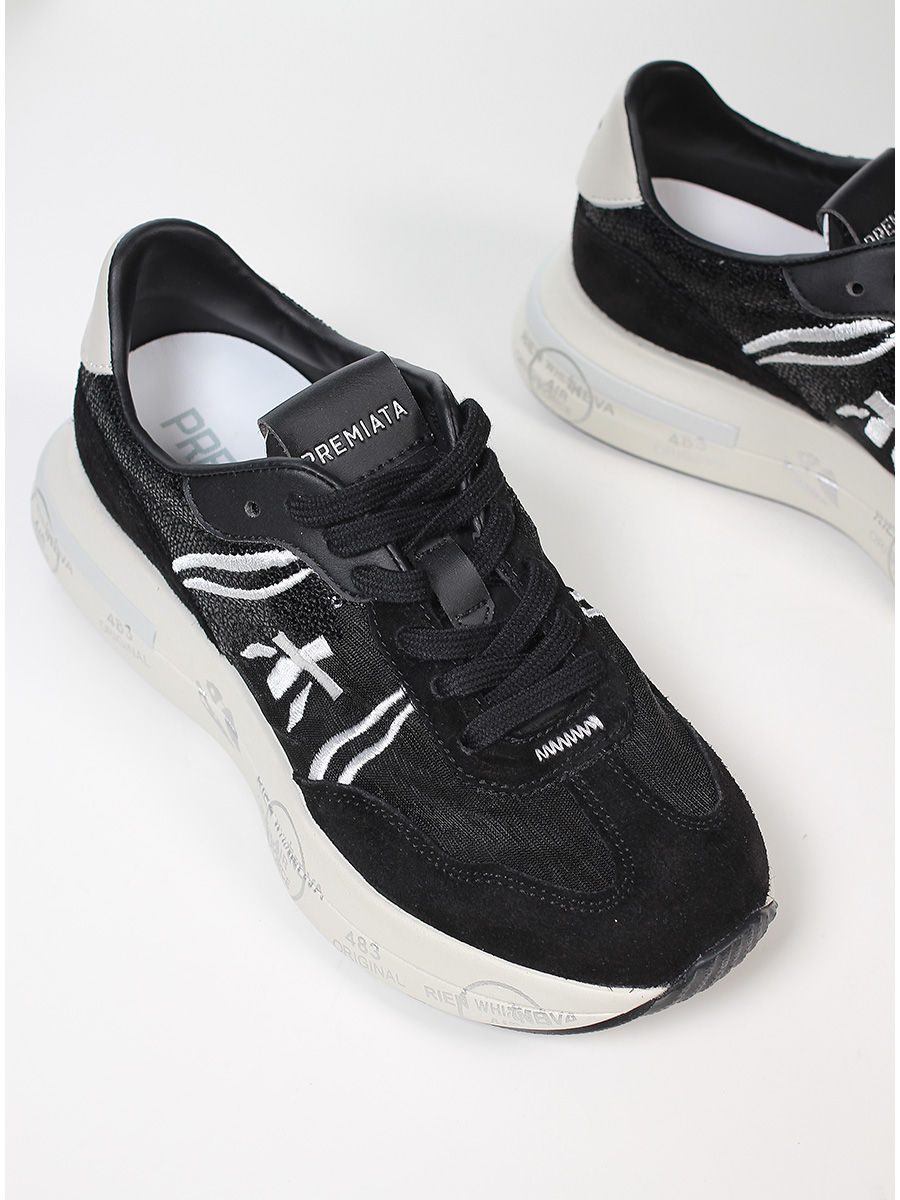 Premiata, marchio sinonimo di avanguardia e espressività, nasce con un solo obiettivo: essere il compagno di viaggio ideale di chi detesta i cliché e crede nella libertà. Le calzature Premiata, simbolo di creatività estrema, sono realizzate artigianalmente modellando la materia partendo dal bianco, che dona grande libertà di plasmare le forme. La scarpa Premiata, realizzata con grande abilità manuale e minuziosa cura dei dettagli, è caratterizzata da eleganza, comodità e da un design inconfondibile.