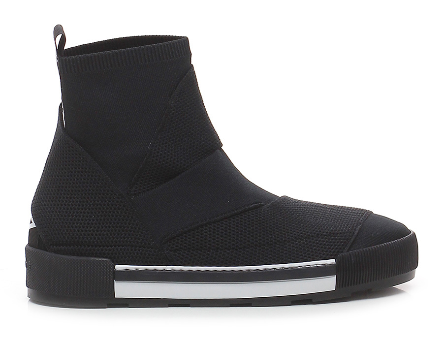 Sneaker in tessuto stretch a retina, suola in gomma. Altezza suola: 35, platform 25 con battuta 10. Logo lettering sul dietro, punta tonda.