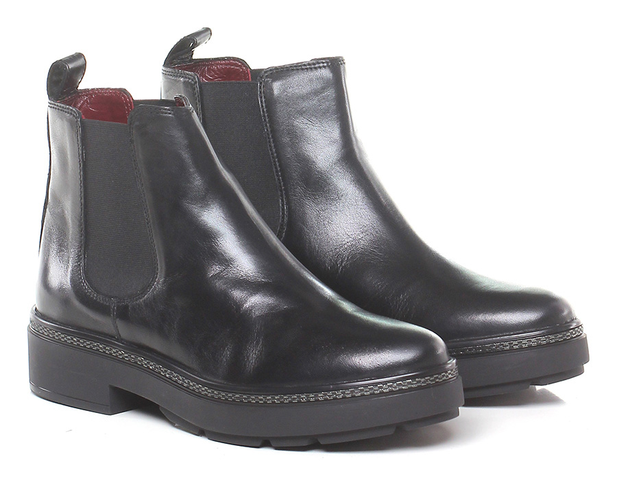 Tronchetto in pelle con inserti elasticizzati su ambo i lati e suola in gomma. Tacco 40, platform 30 con battuta 10.