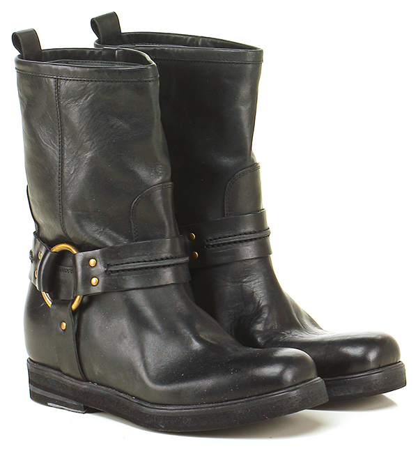 Tronchetto in pelle effetto delavè con cinturino alla caviglia e suola in gomma. Tacco 30, platform 20 con battuta 10.