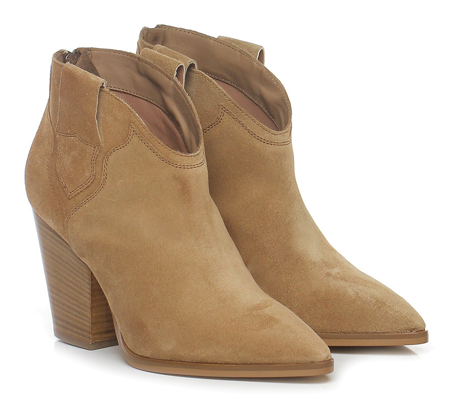 Tronchetto in camoscio con zip sul retro, suola in gomma. Tacco 85.