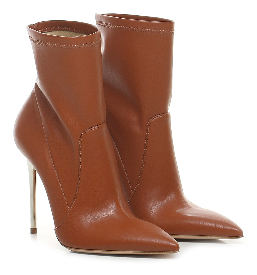 Tronchetto in pelle e pelle stetch con suola in cuoio. Tacco in metallo. Altezza tacco 110mm.