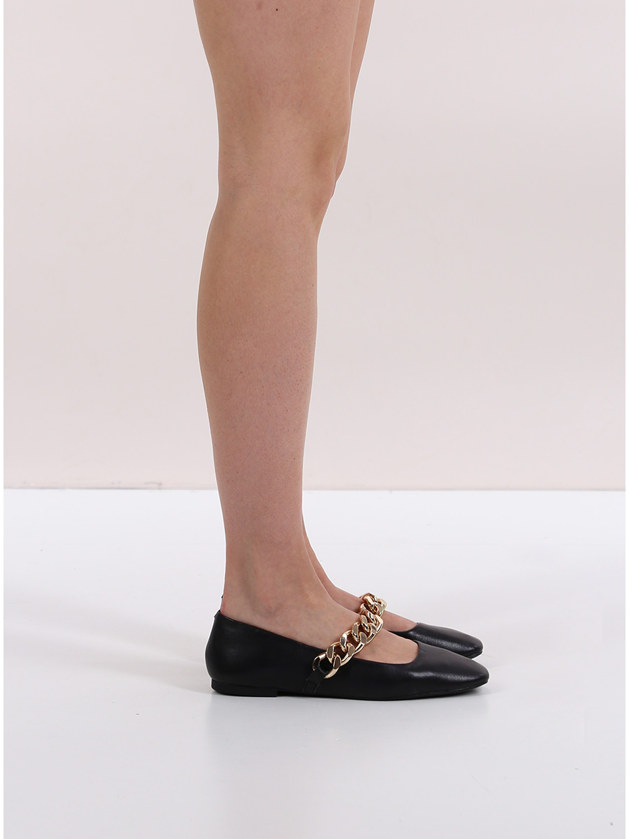 Scarpa in pelle con catena frontale. Suola in gomma.
