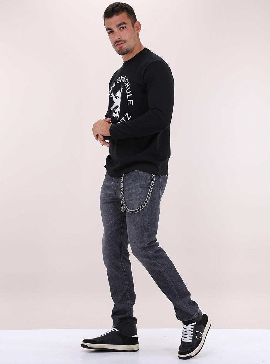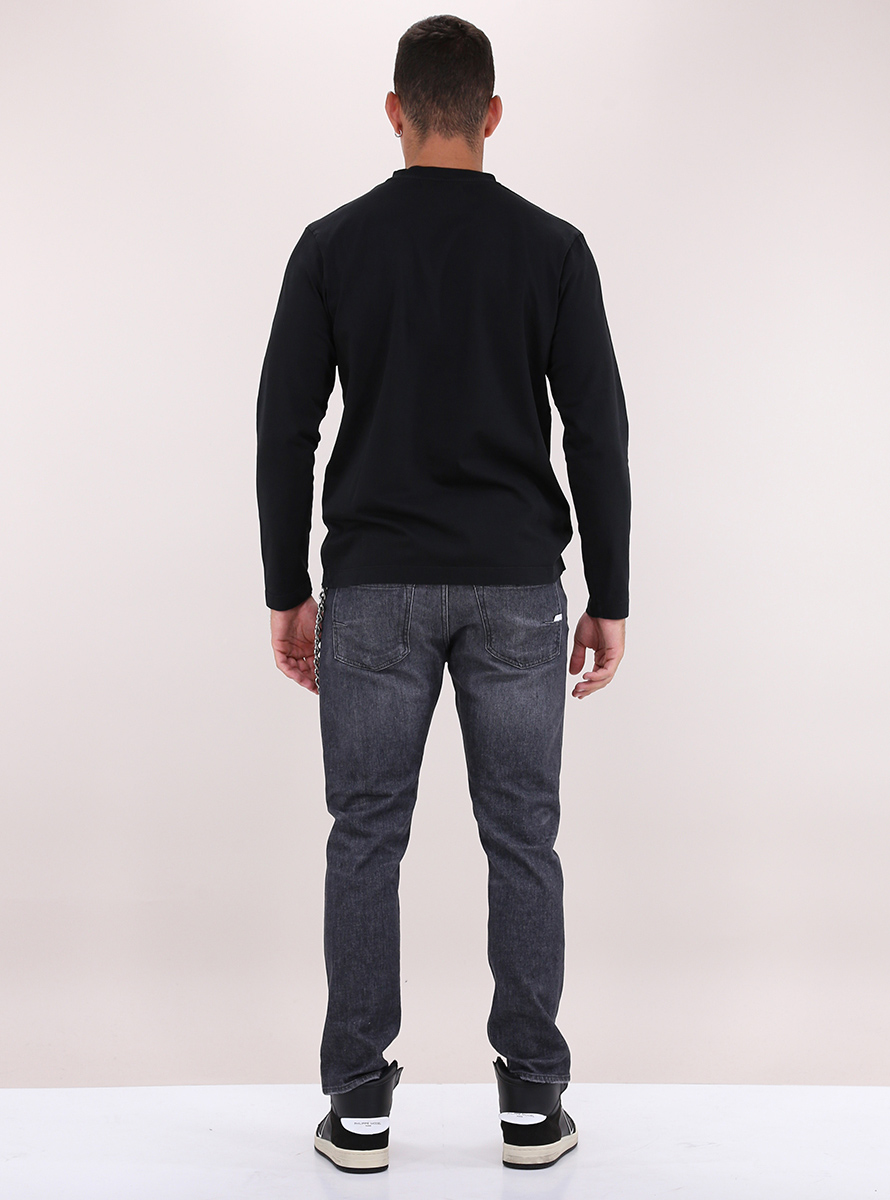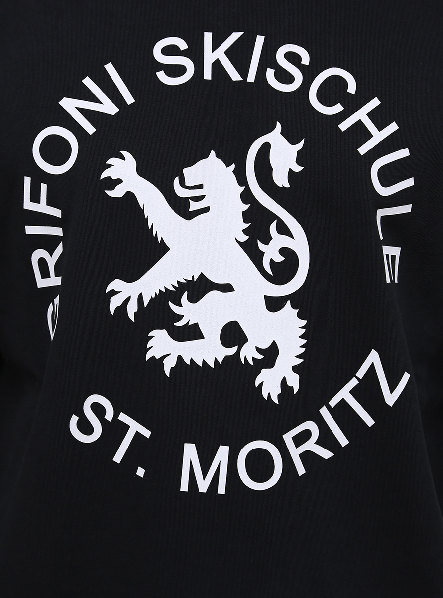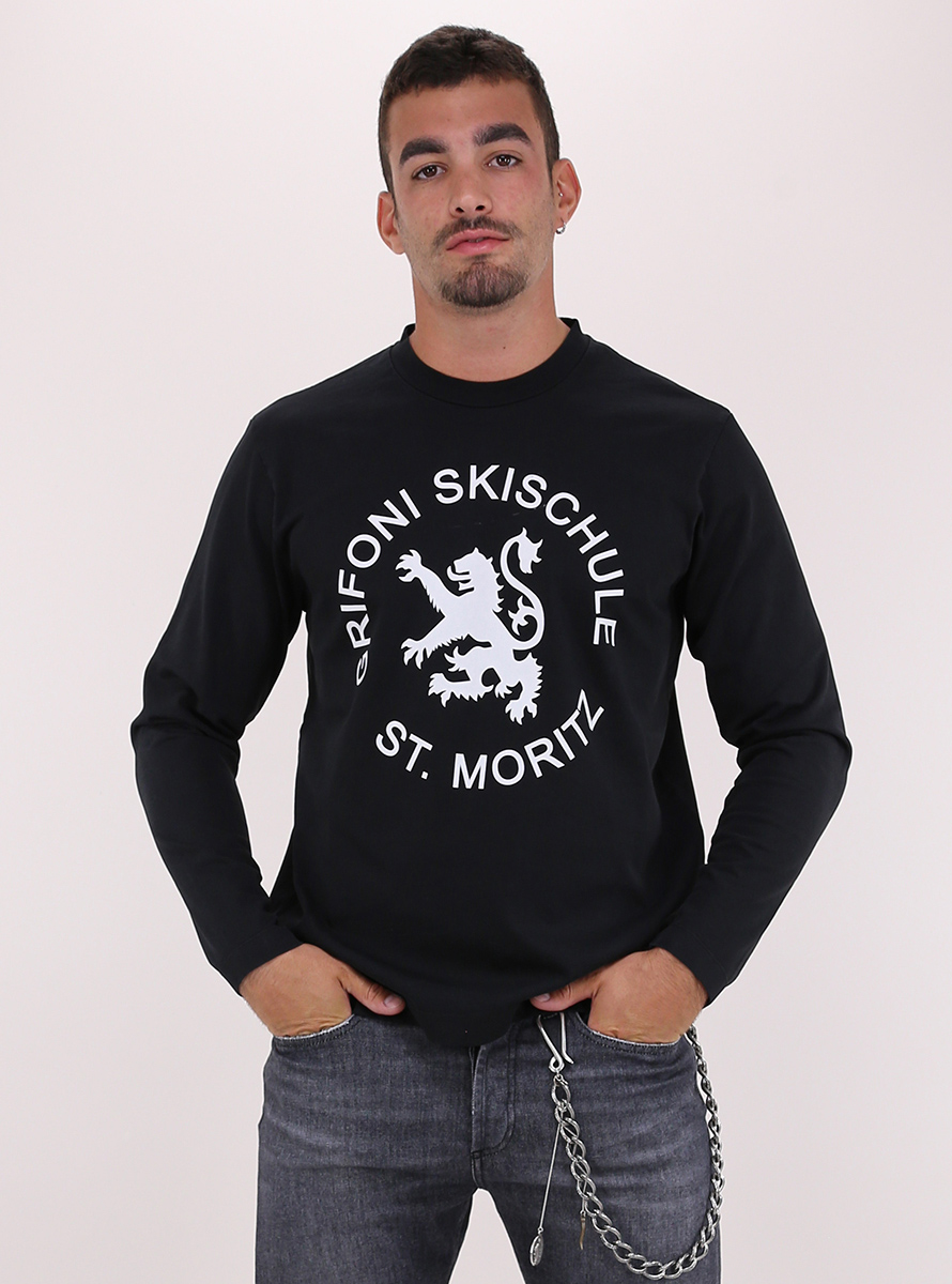 Maglia Grifoni in cotone a maniche lunghe e collo a giro. Stampa logata frontale. Il modello è alto 1,80 cm ed indossa la taglia M.