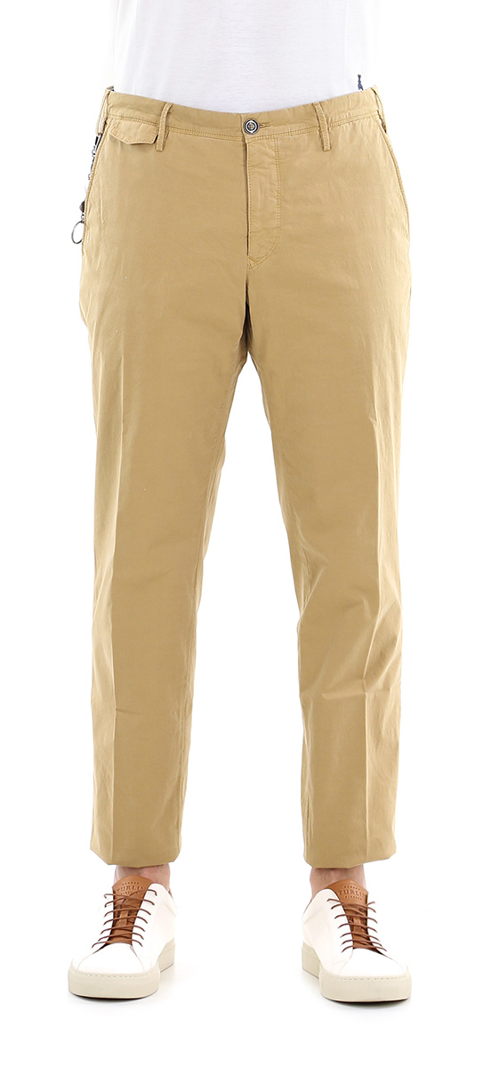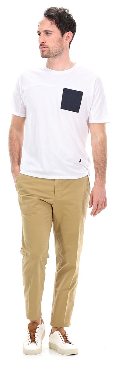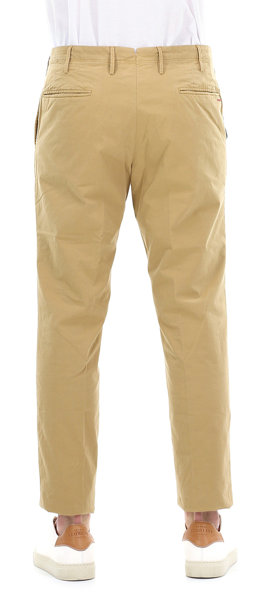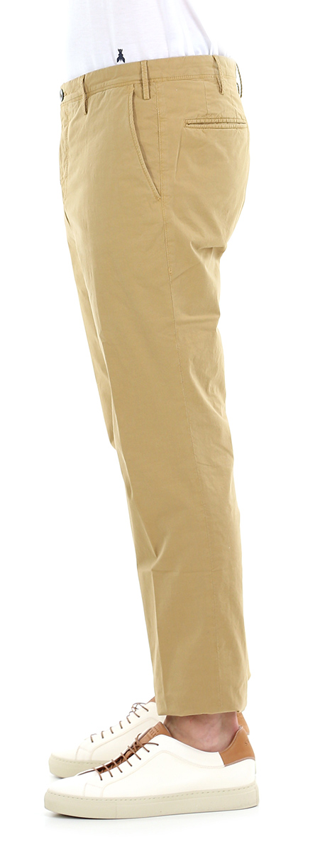 Chino Pt in cotone stretch con tasche all'americana e a filetto sul retro. Vestibilità slim. Portachiavi logato incluso. Il modello è alto 1,80 cm ed indossa la taglia 32.