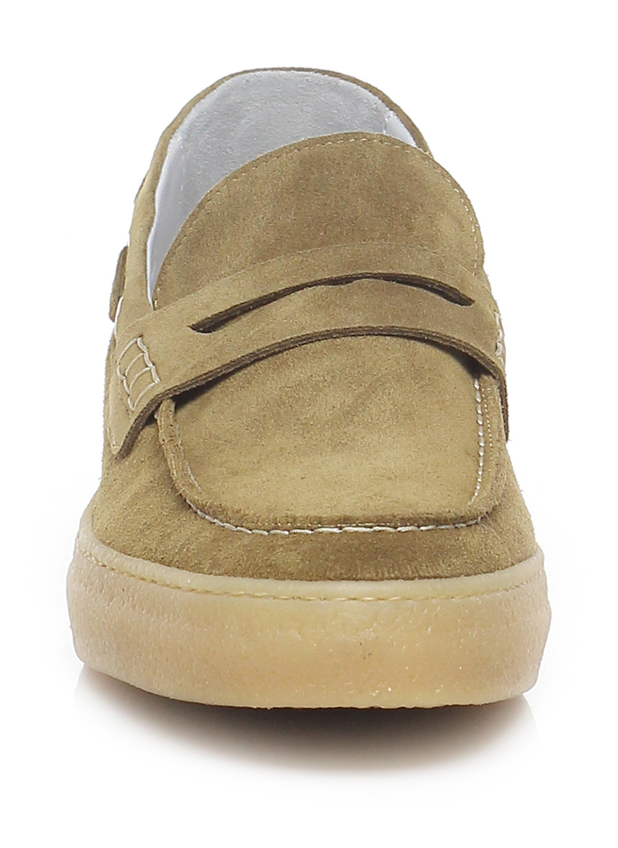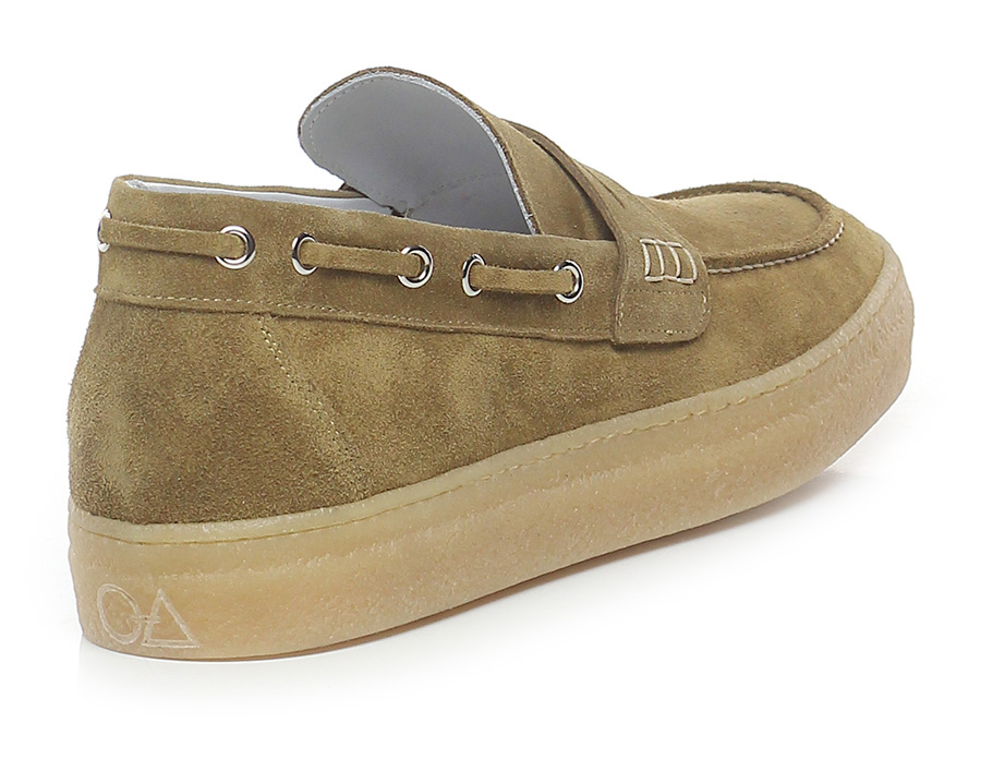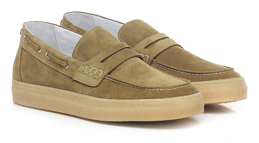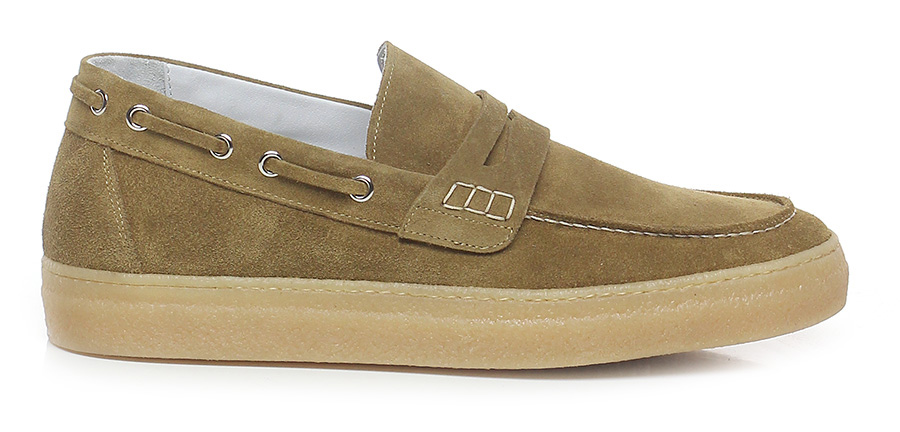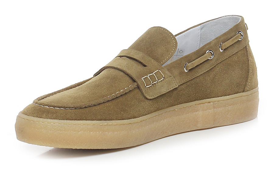 Mocassino in camoscio, suola in gomma. Tacco 30, platform 30.