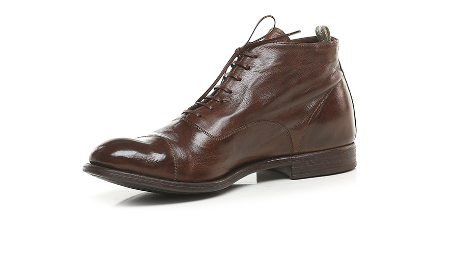 Polacco in pelle effetto vintage con suola in gomma. Altezza tacco 20mm.