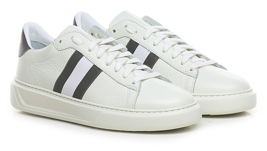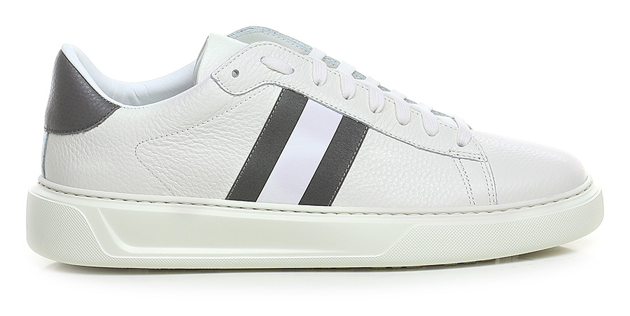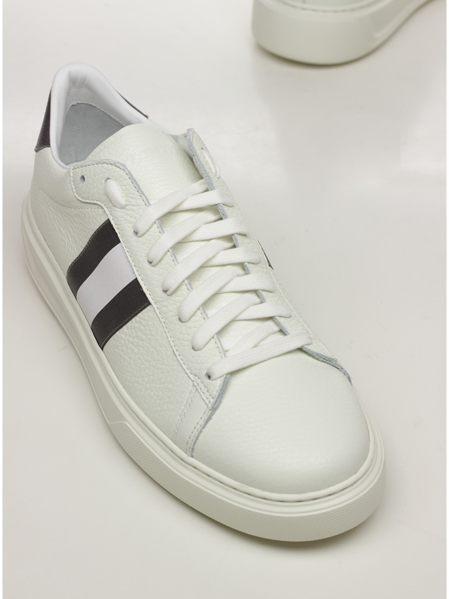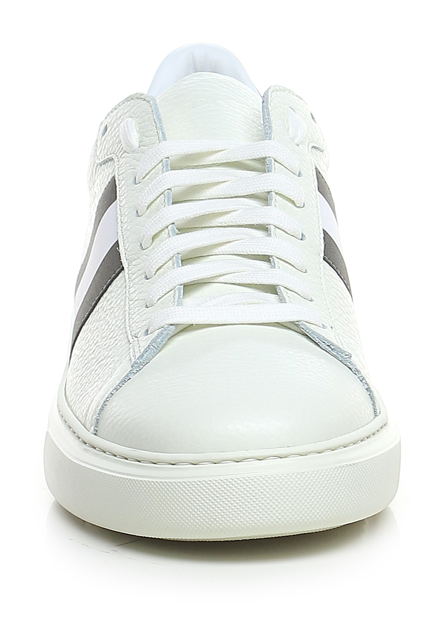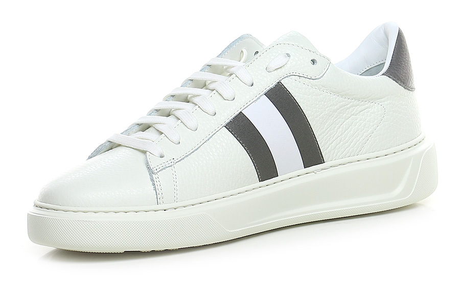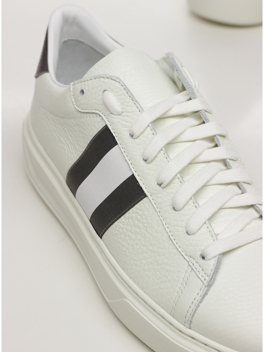 Sneaker in pelle martellata con inserti in tessuto e suola in gomma. Altezza tacco 40mm, platform 30mm con battuta 10mm.