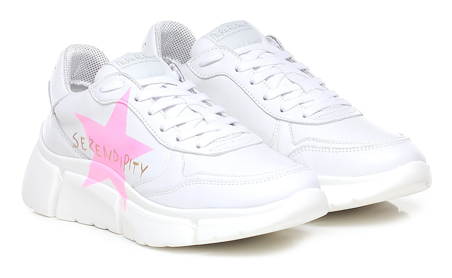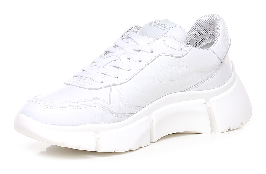 Sneaker in pelle, suola in gomma. Tacco 55, platform 25 con battuta 30.