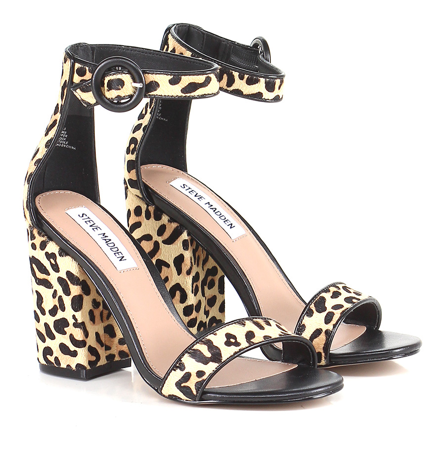 Sandalo alto in pelle effetto cavallino stampato con cinturino alla caviglia e suola in gomma. Tacco 100.