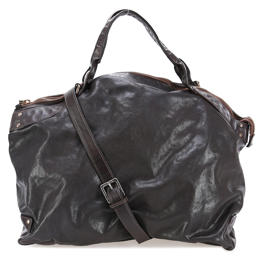 Borsa in pelle con chiusura zip. Tracolla inclusa. Misure 43 x 32 cm. Dettagli gold.
