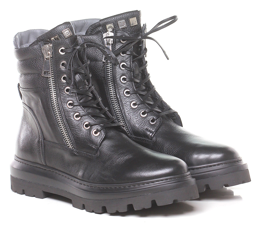 Polacco in pelle vintage con zip su ambo i lati. Suola in gomma, tacco 50, platform 35 con battuta 15.