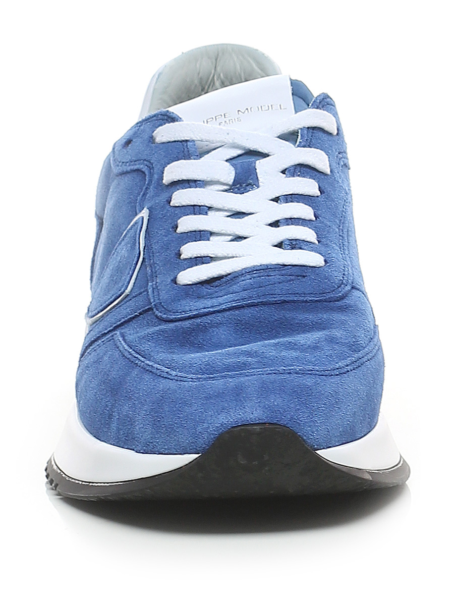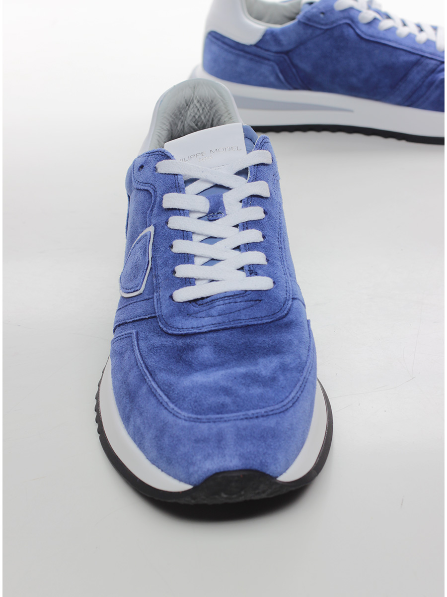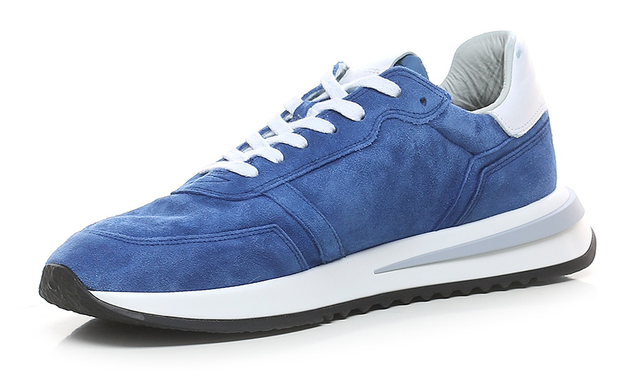 Sneaker in camoscio con talloncino in pelle effetto vintage e linguetta in tessuto. Suola in gomma. Altezza tacco 35mm, platform 25mm con battuta 10mm.