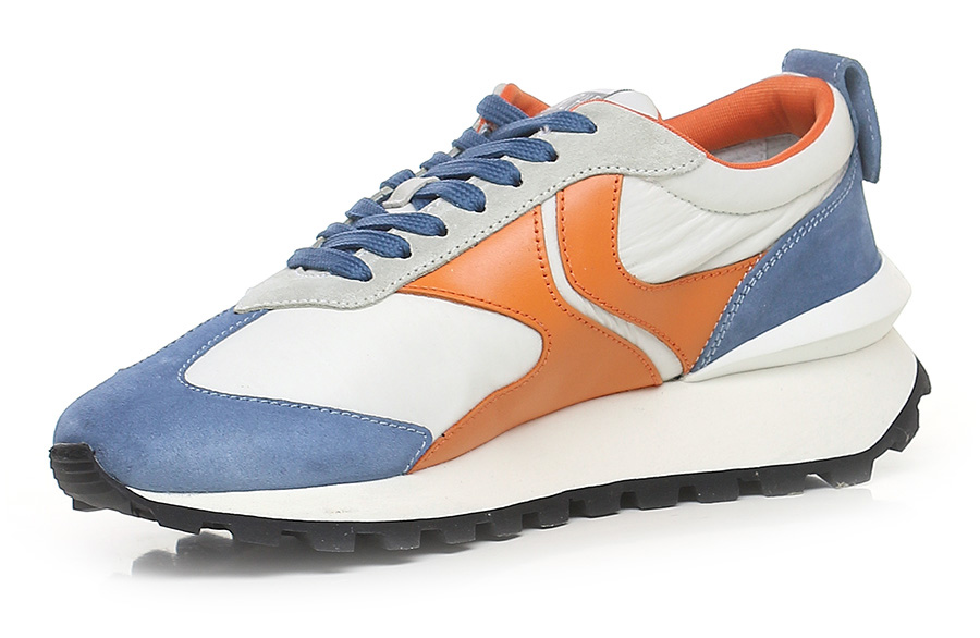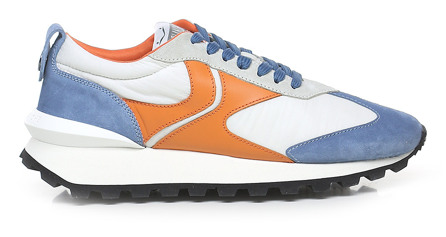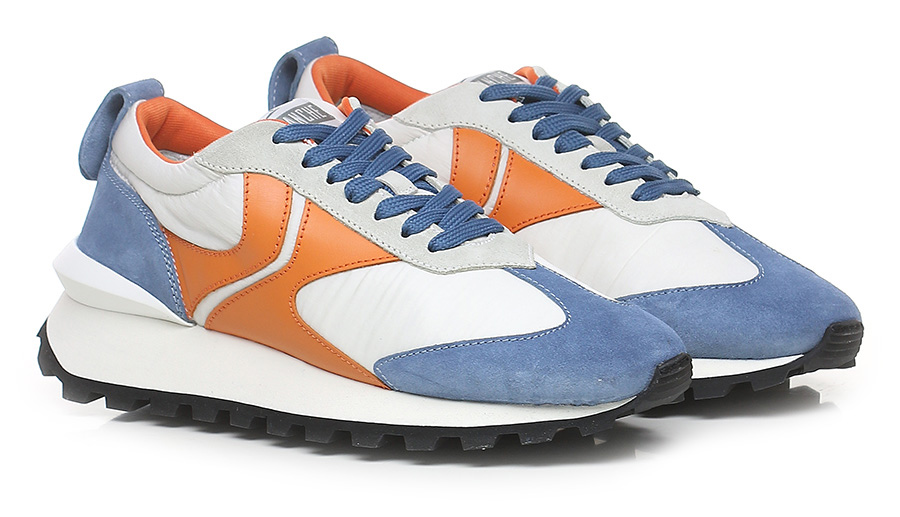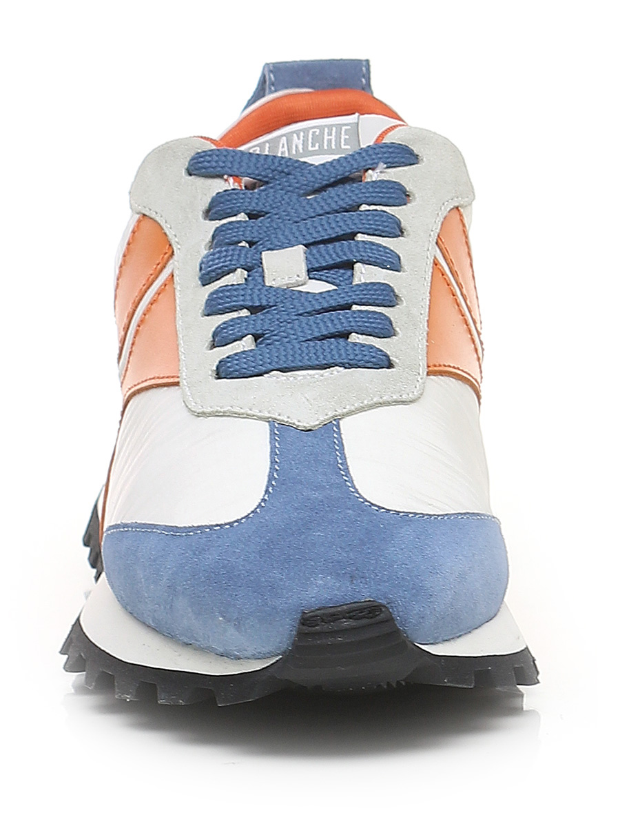 Sneaker in tessuto, camoscio e pelle con suola in gomma. Altezza tacco 40mm, platform 25mm con battuta 15mm.