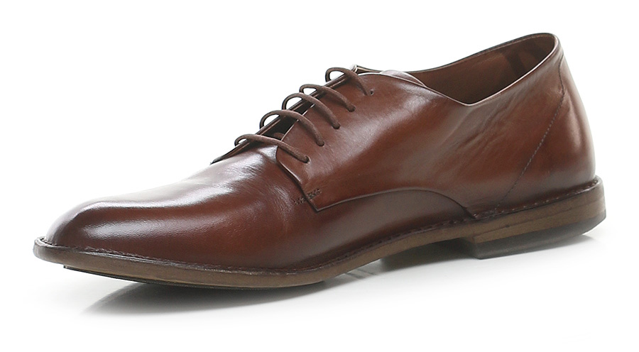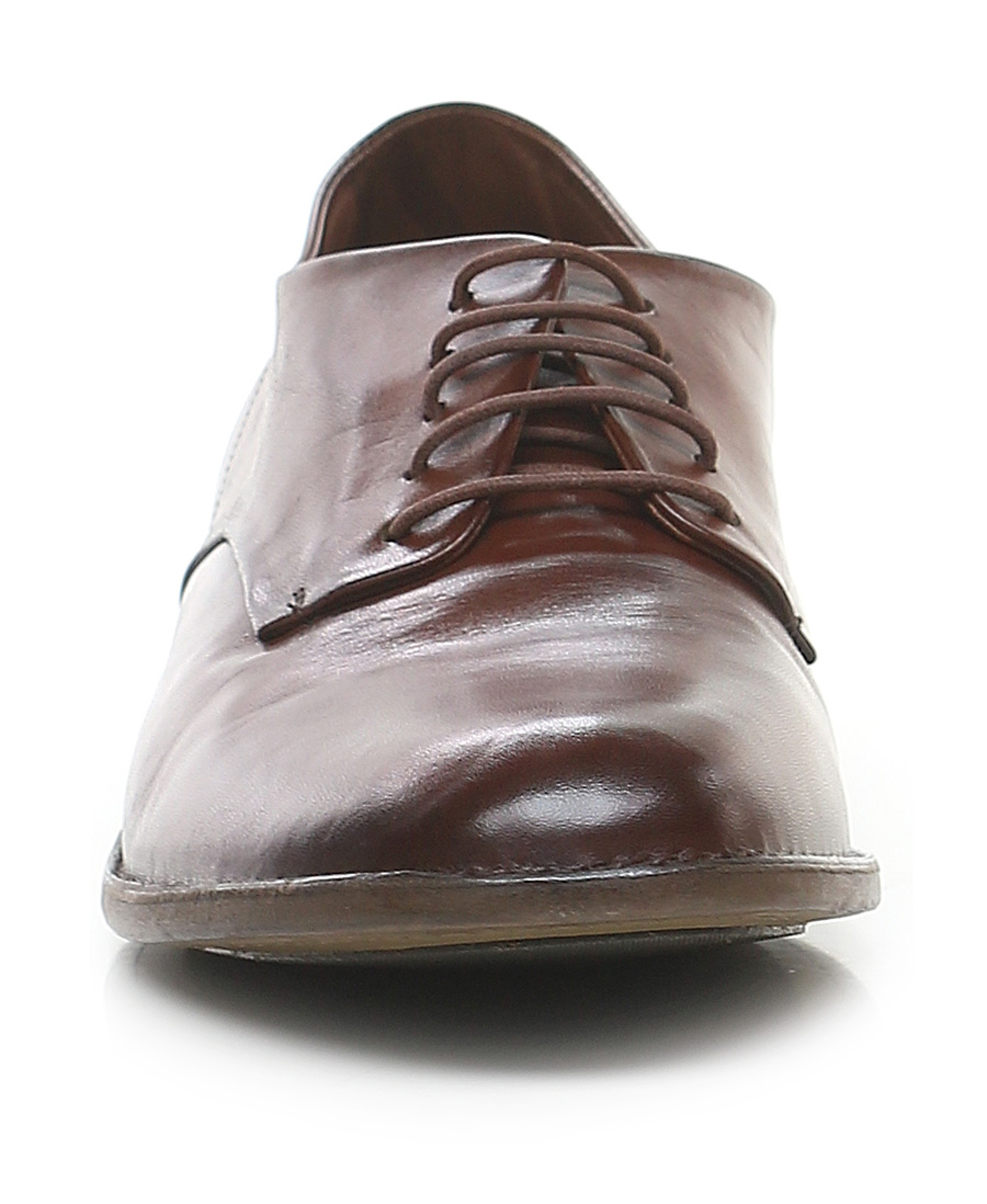 Stringata in pelle effetto vintage con suola in cuoio e gomma. Altezza tacco 20mm.