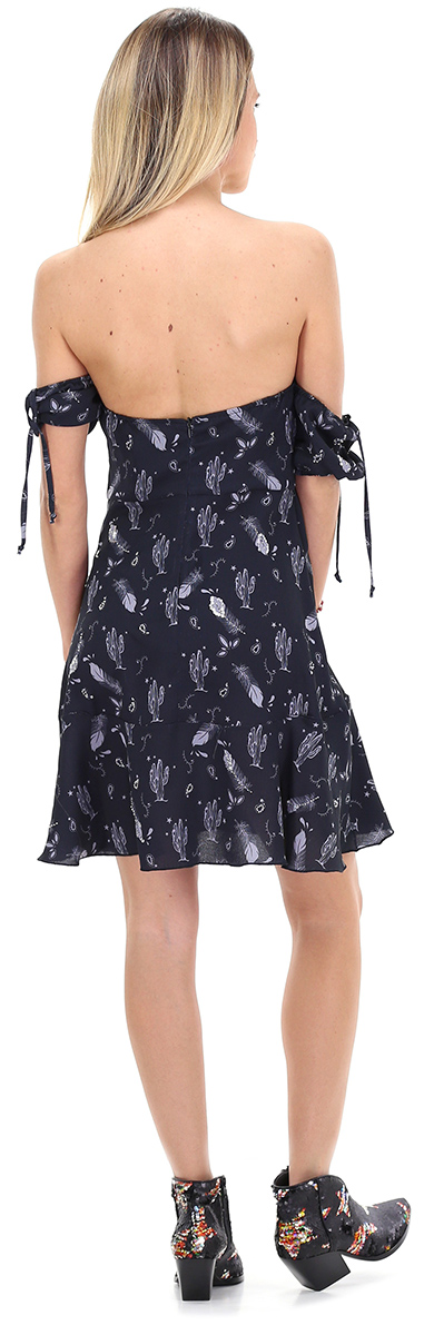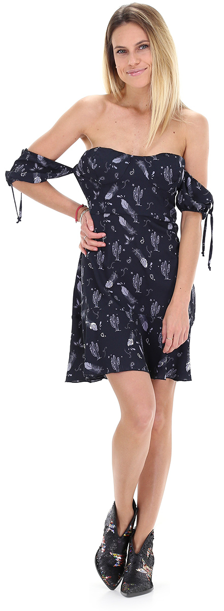 Abito stile corsetto morbido con maniche arricciate, svasato sul fondo. La modella è alta 1,68 ed indossa la taglia S.