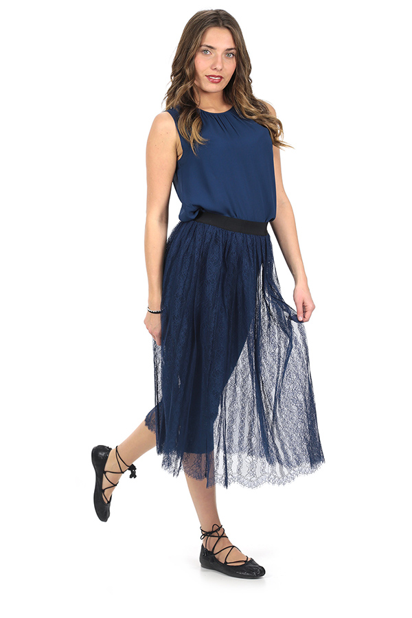 Gonna in pizzo con elastico in vita. Leggings incluso.