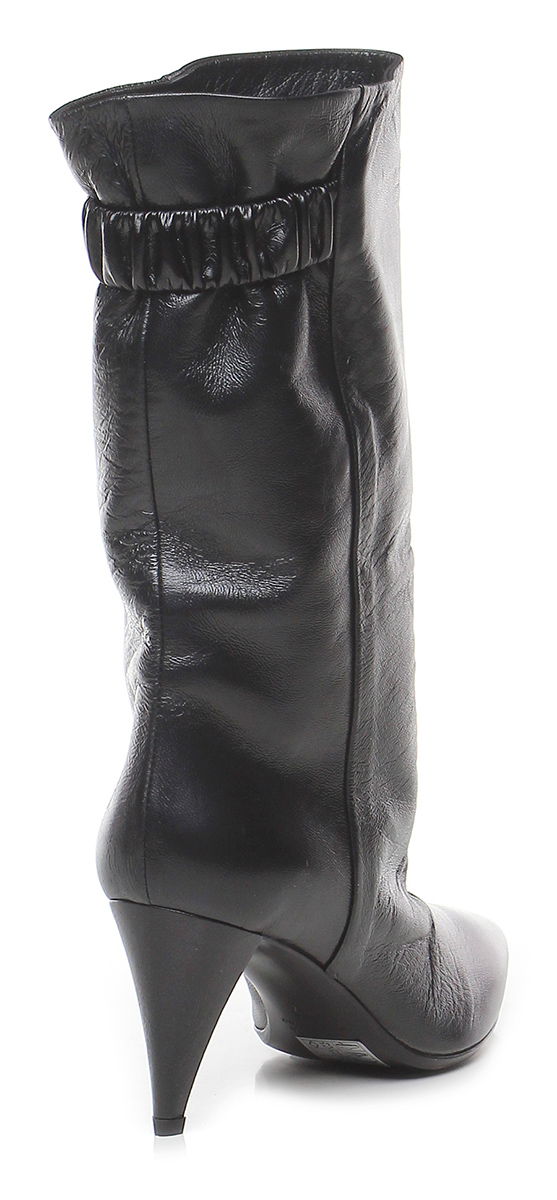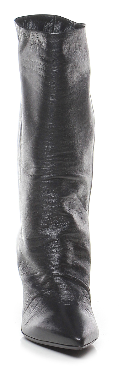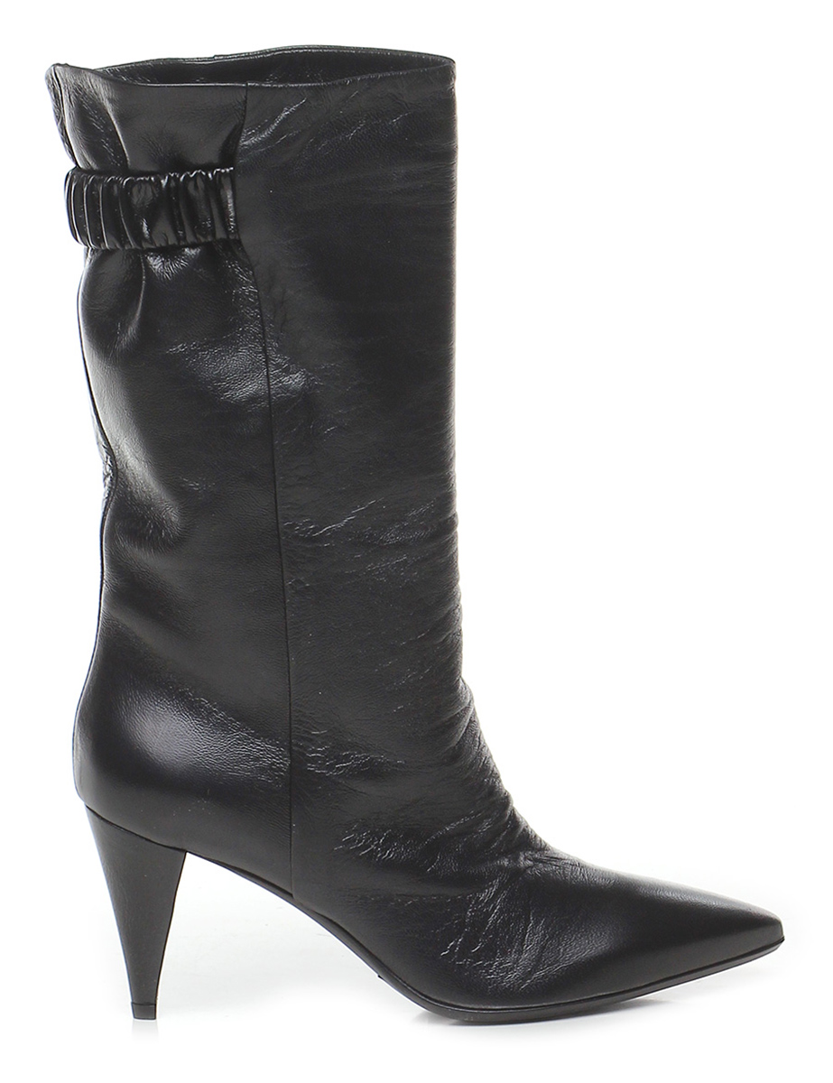 Stivale in pelle effetto vintage con inserti elasticizzati sul retro gambale, suola in cuoio e gomma. Tacco 80, rivestito in pelle. Altezza gambale 250.