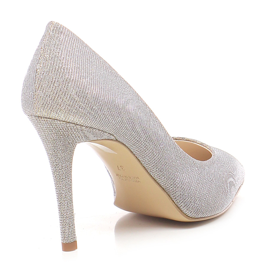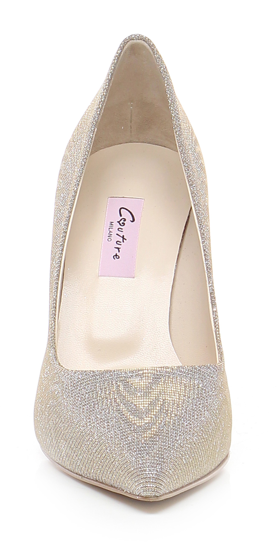 Decolletè in tessuto lurex con suola in cuoio. Tacco 95.