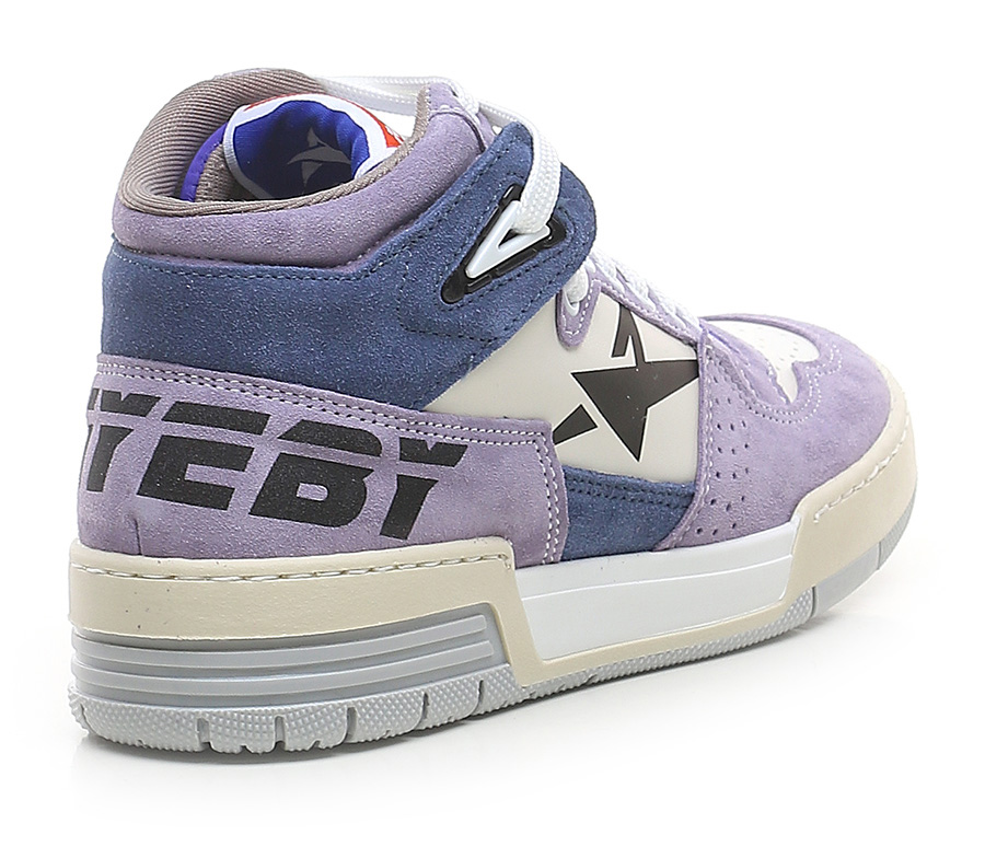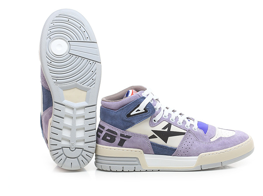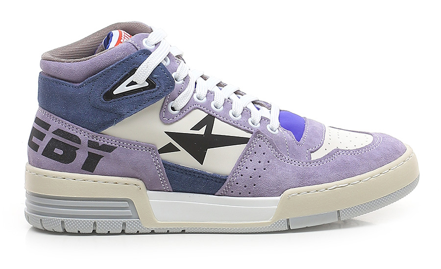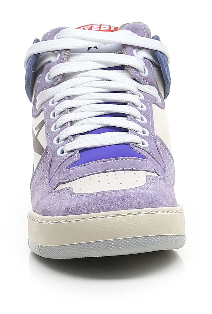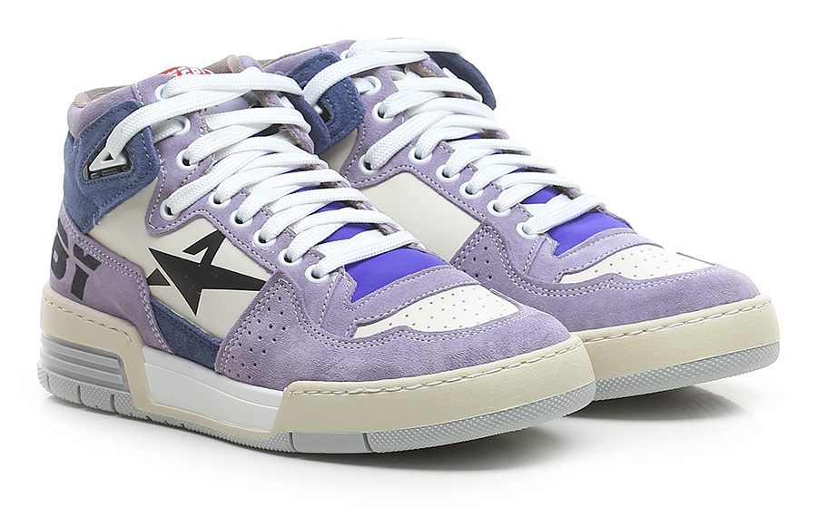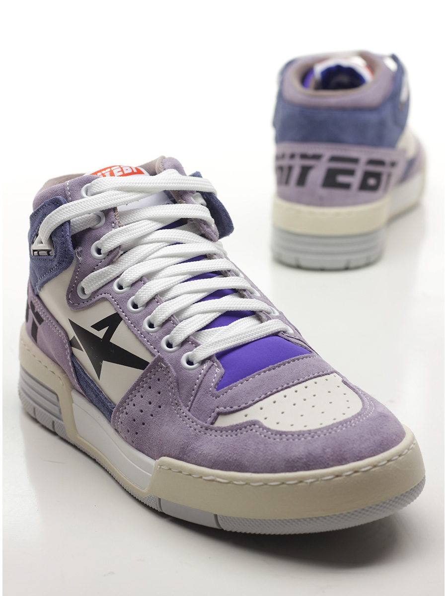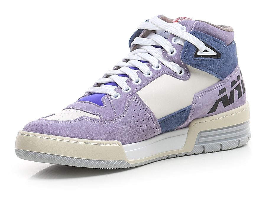 Sneaker in camoscio e similpelle con suola in gomma. Altezza tacco 40mm, platform 25mm con battuta di 15mm.