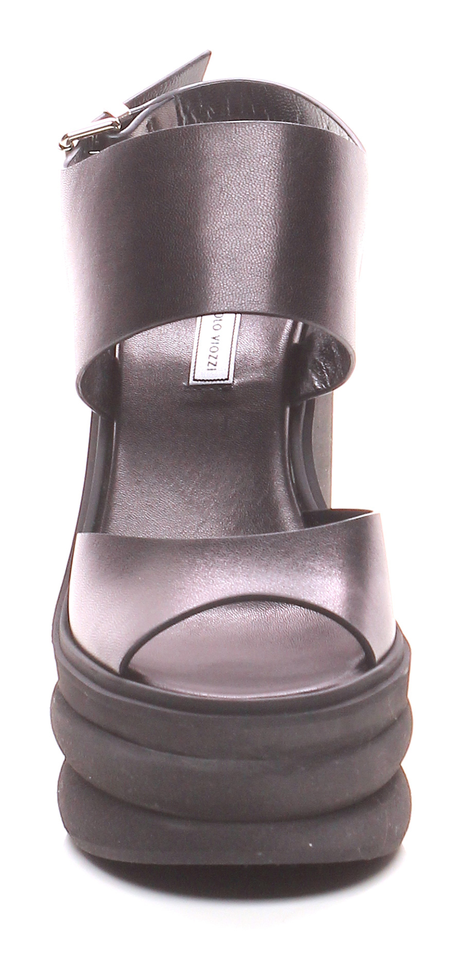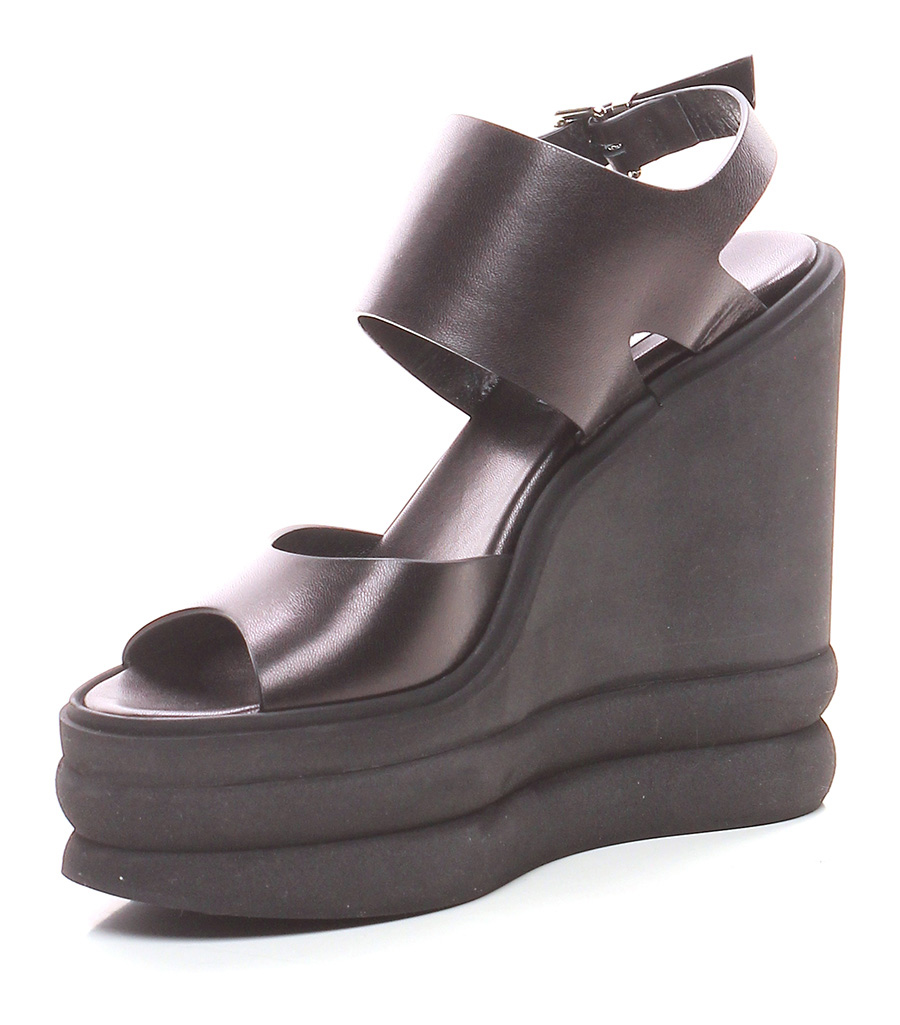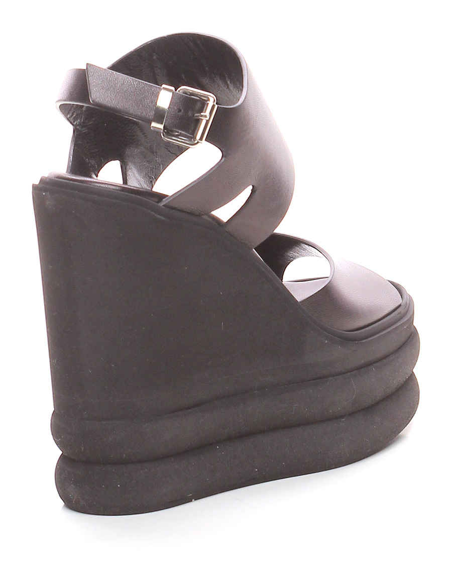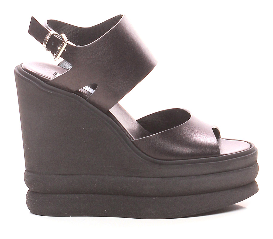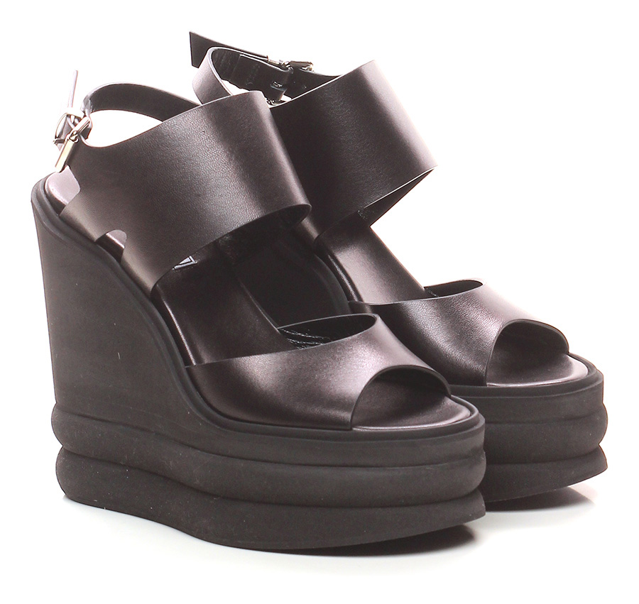 Zeppa in pelle con cinturino su retro e suola in gomma. Tacco 140, platform 55 con battuta 85.