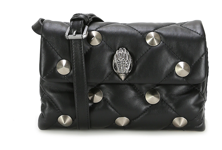 Borsa in pelle con bottone magnetico di chiusura e borchie applicate. Misure 24 x 17 cm. Dettagli silver.