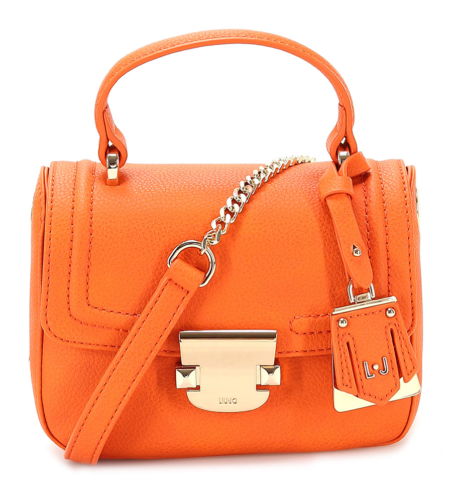 Borsa in eco pelle con chiusura a scatto. Tracolla a catena con dettaglio in eco pelle. Misure 19 x 14 cm. Dettagli gold.