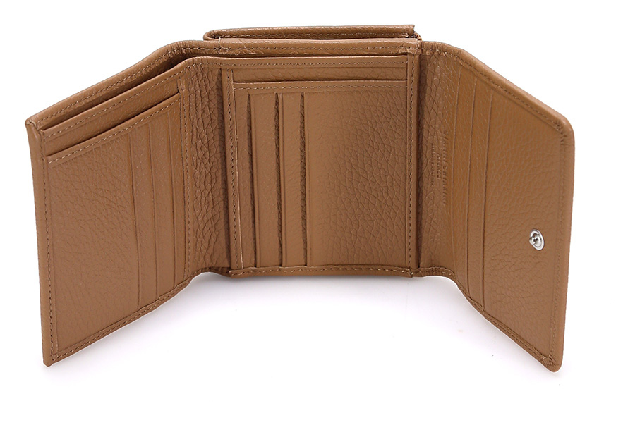 Geldbörse aus gehämmertem Leder mit Verschlussknopf. Interner Kartenhalter und Geldscheinhalter. Externe Geldbörse. Misst 12 x 11 cm.
