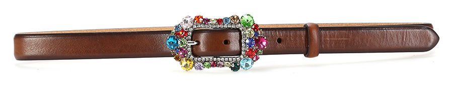 Cintura in pelle con fibbia in metallo con strass applicati. Altezza 2 cm. Dettagli silver.
