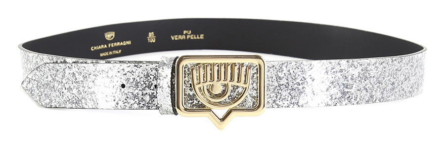 Kunstledergürtel mit Metallschnalle. Höhe 3,5 cm. Golddetails.