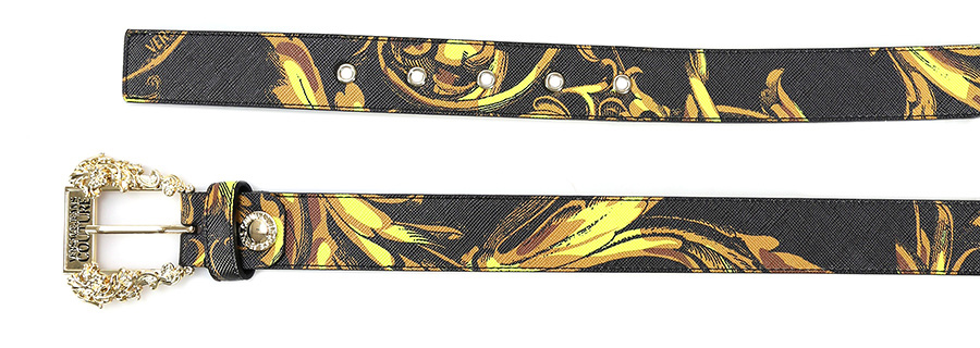 Ledergürtel mit Metallschnalle. Höhe 3cm. Golddetails.