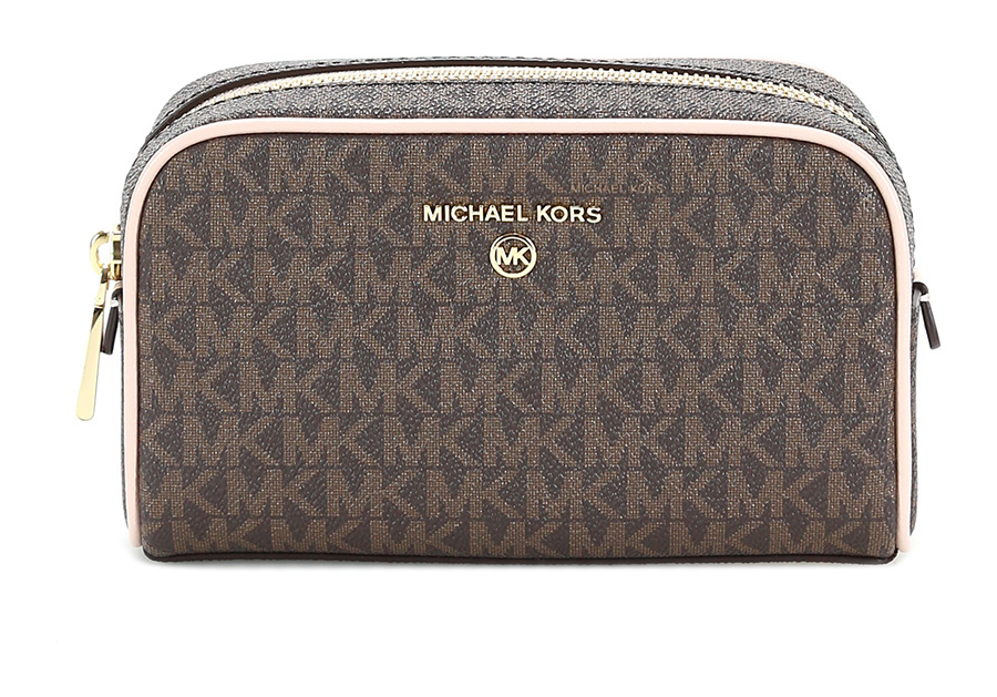 Schönheit aus Leder mit Logo und Reißverschluss. Misst 18 x 11 cm. Golddetails.