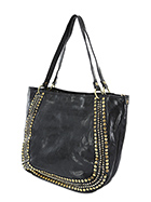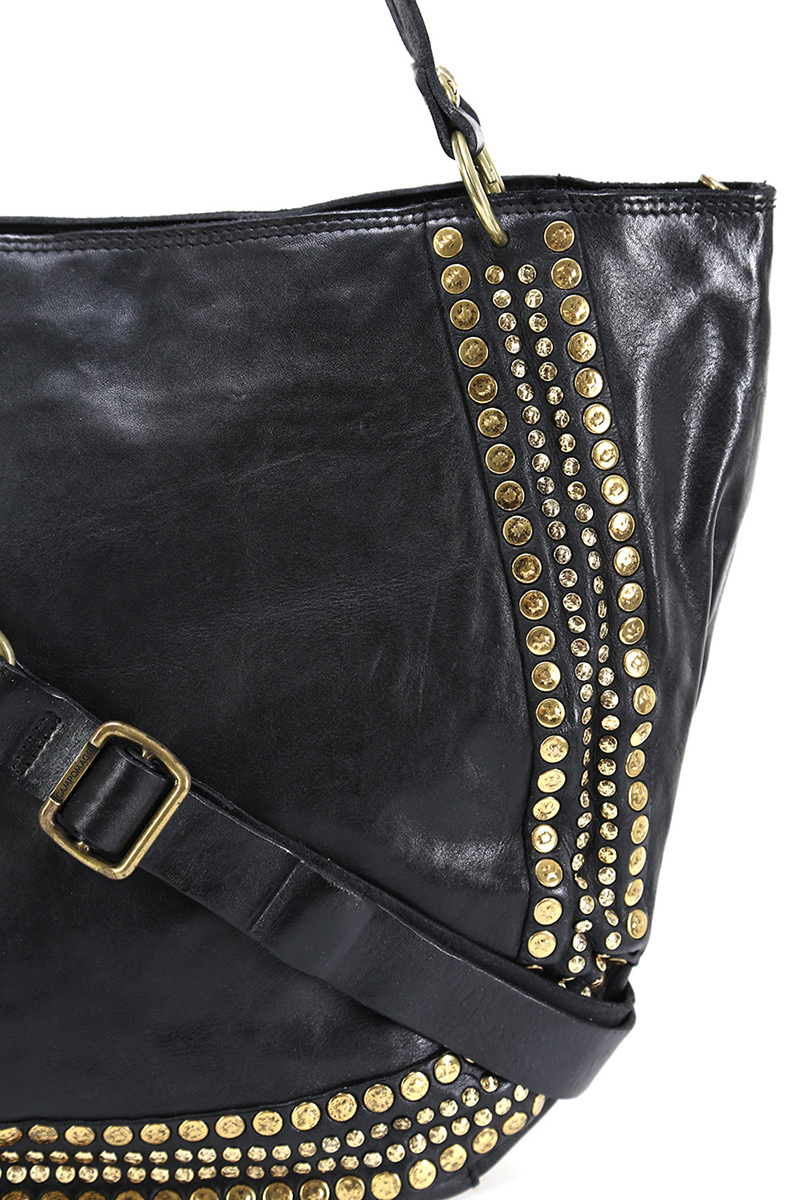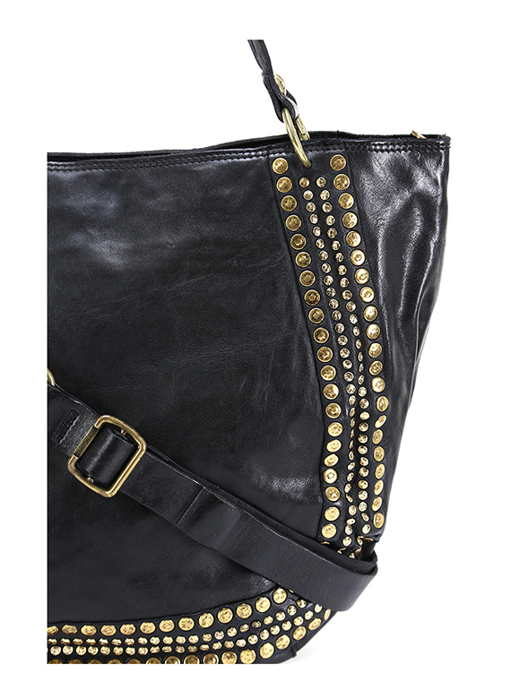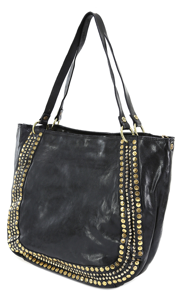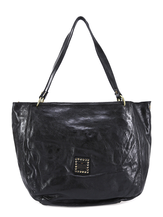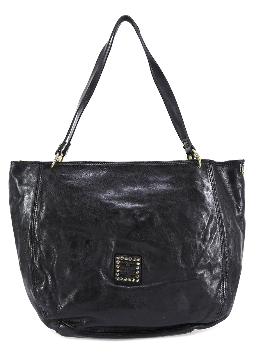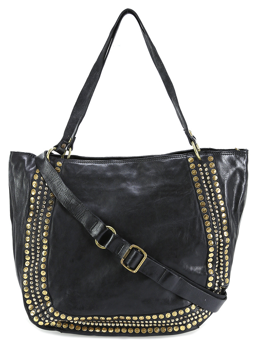 Ledertasche mit Reißverschluss. Inklusive Schultergurt. Misst 43 x 32 cm.
