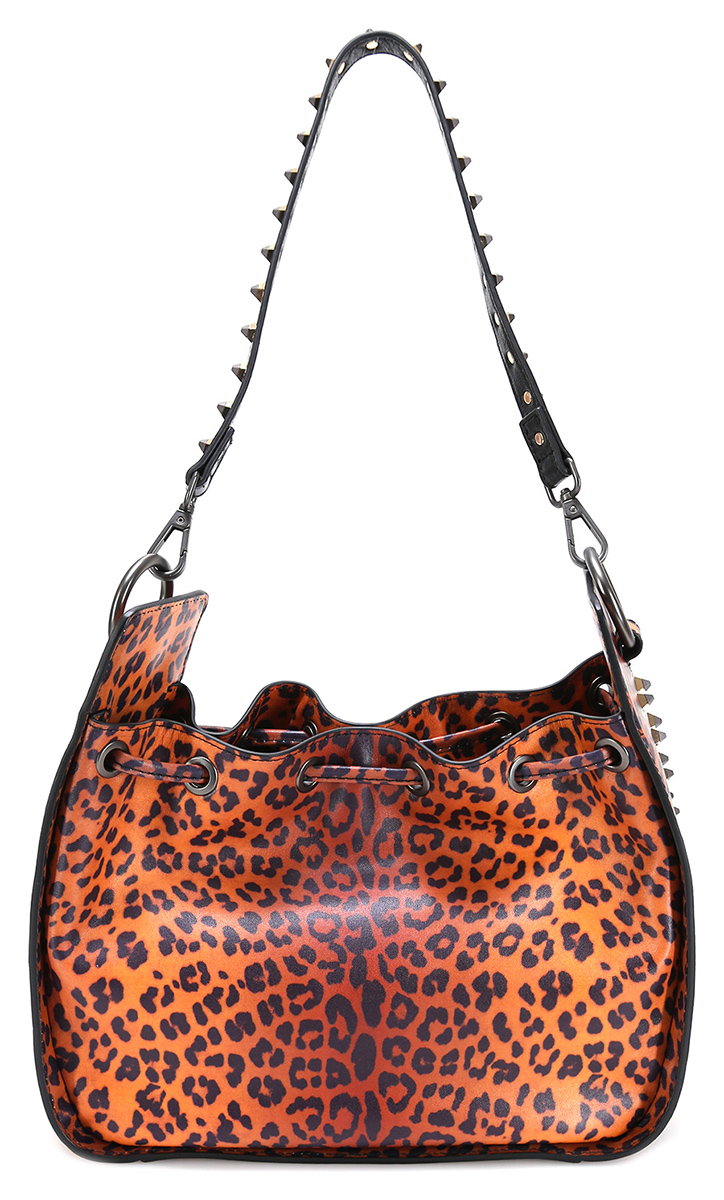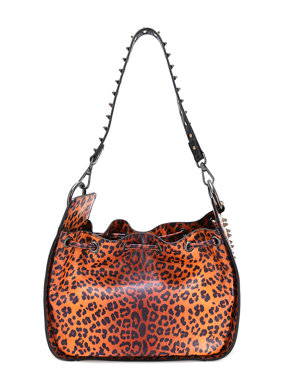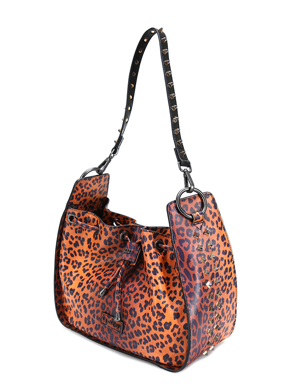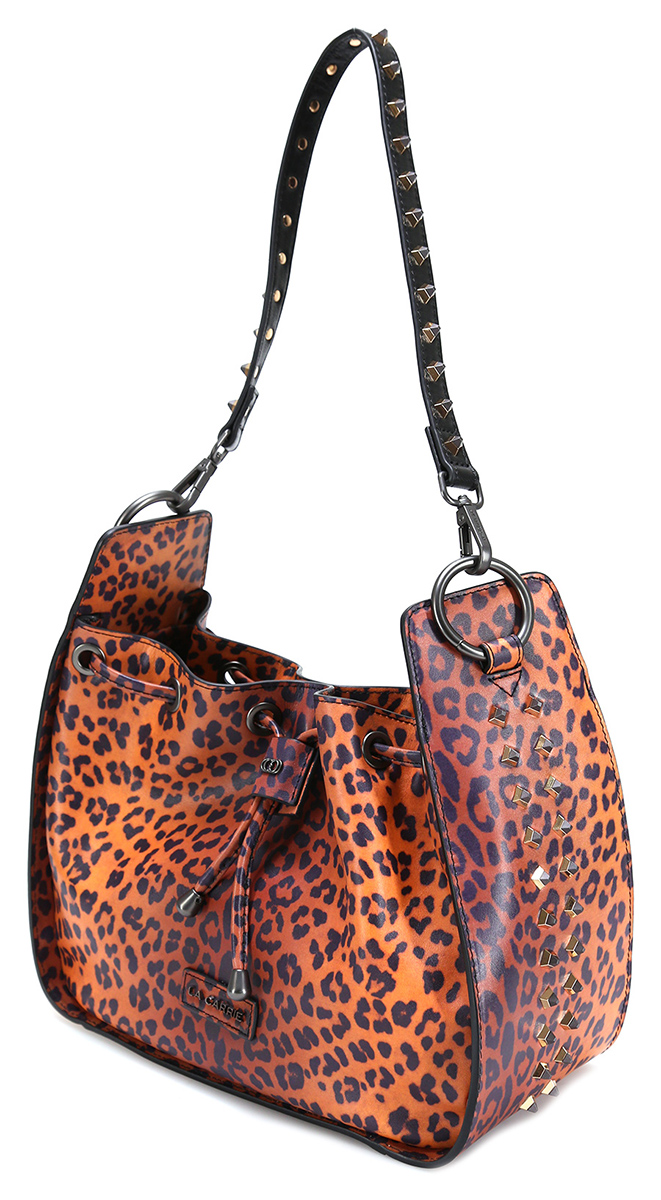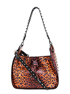 Ledertasche mit Magnetverschlussknopf. Angewandte Nieten. Inklusive Schultergurt. Misst 30 x 26 cm.