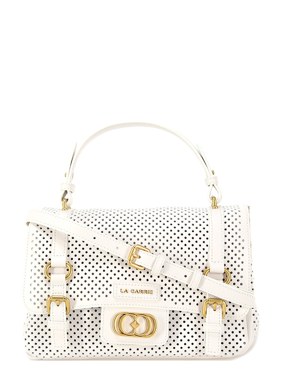 Ledertasche mit Magnetverschlussknopf. Inklusive Schultergurt. Misst 17 x 11 cm.