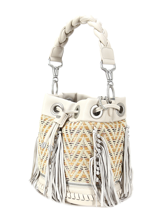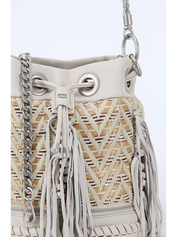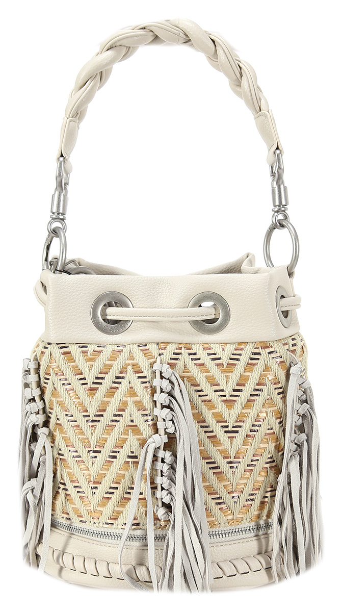 • Details: Logo, Taschenboden mit Stützen, Silberne Details, Fransen