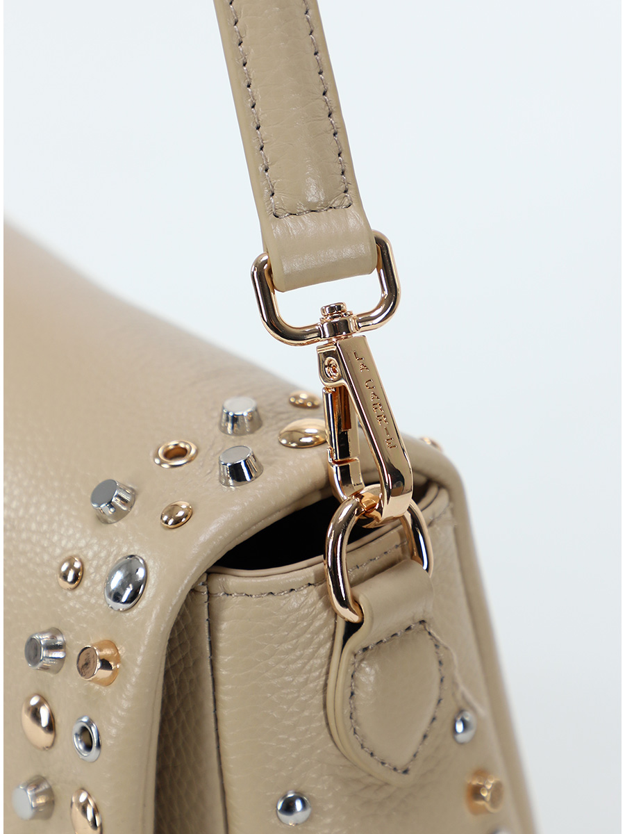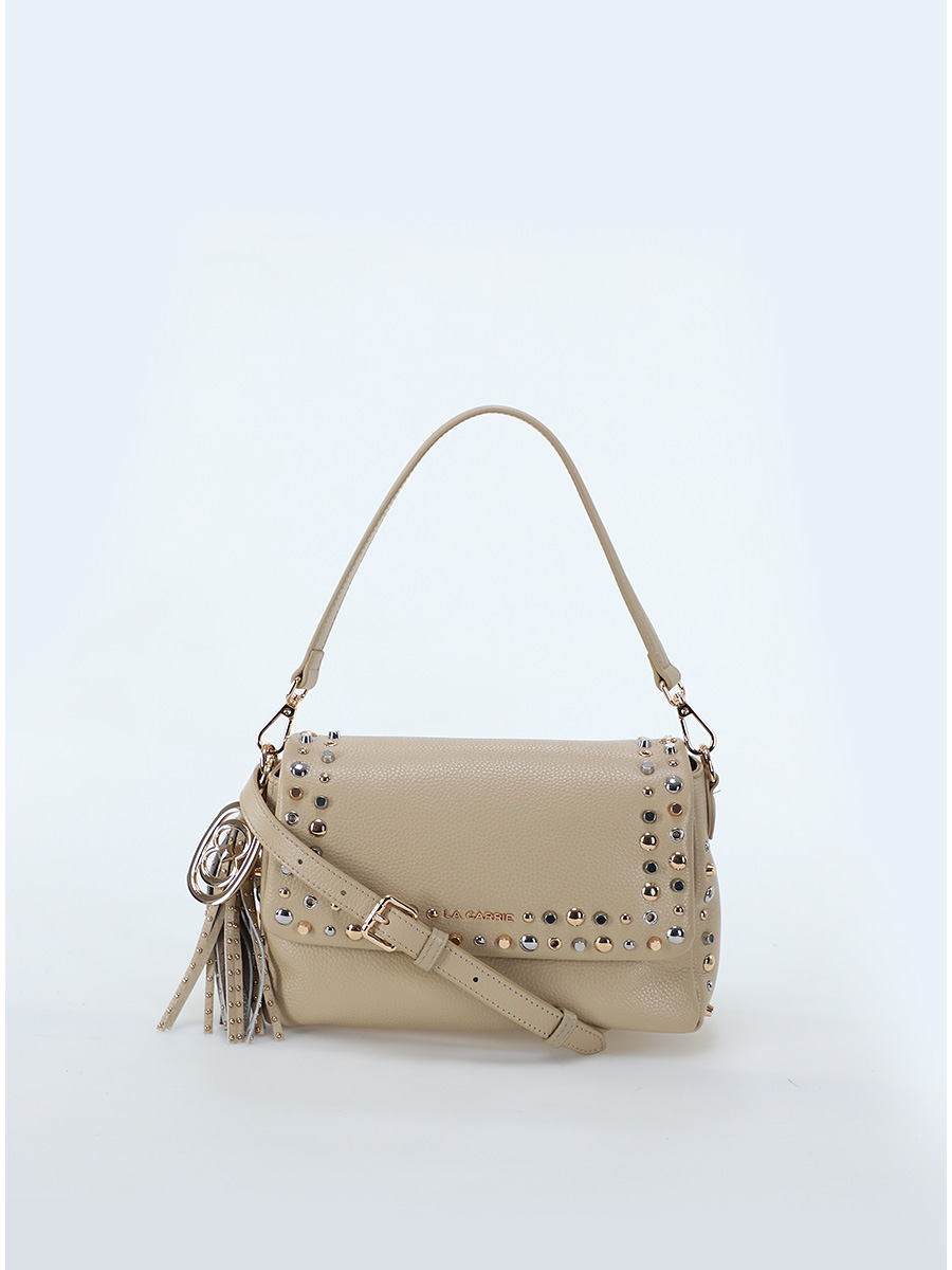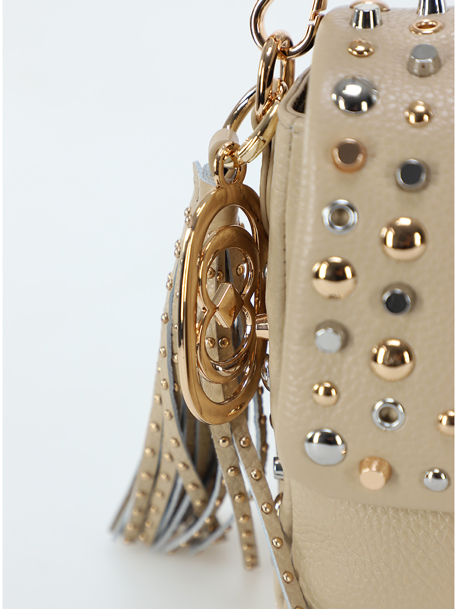 • Details: Logo, Strass, Nieten, Taschenboden mit Stützen, Goldene Details, Borte