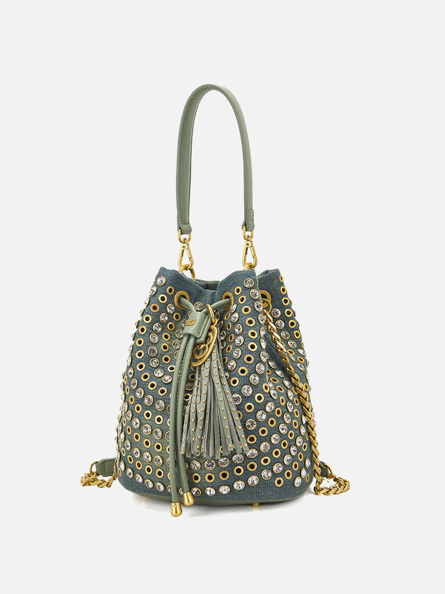 • Details: Logo, Strass, Nieten, Taschenboden mit Stützen, Goldene Details, Nappaleder