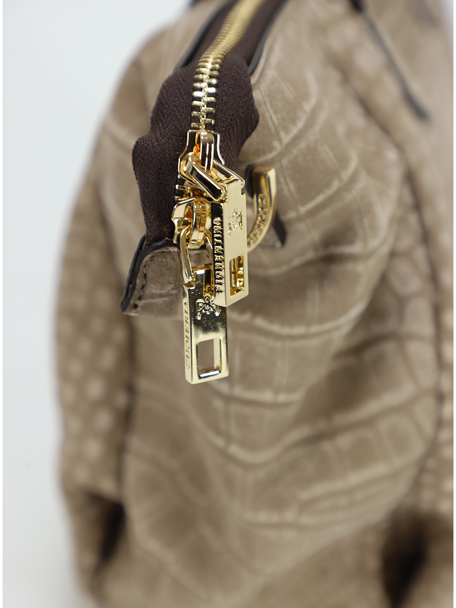 • Details: Logo, Taschenboden mit Stützen, Goldene Details, Bedruckte