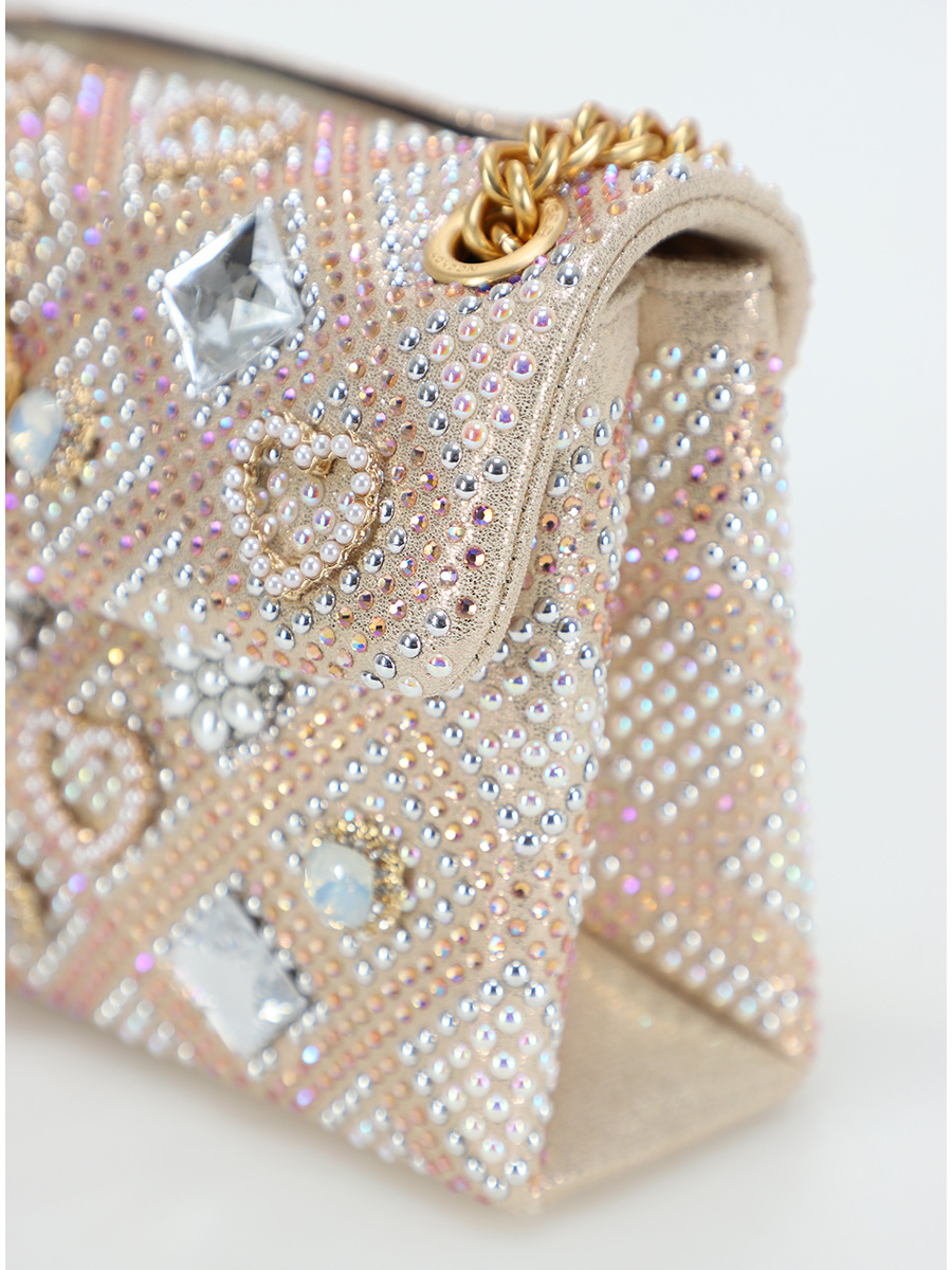 • Details: Logo, Perlen, Strass, Goldene Details, Bedruckte