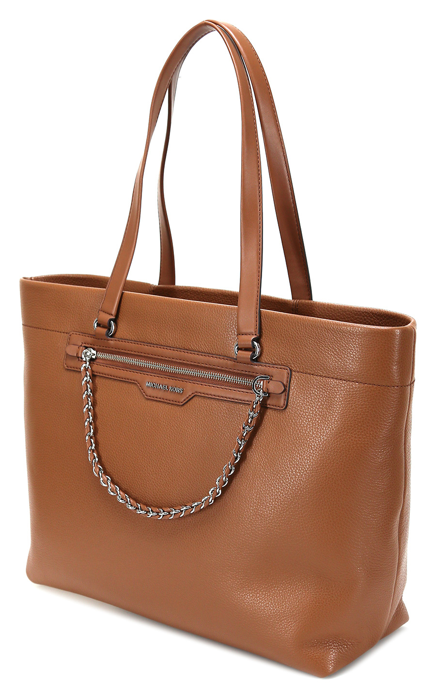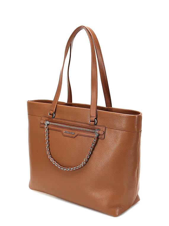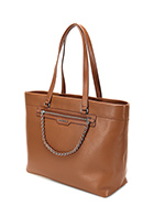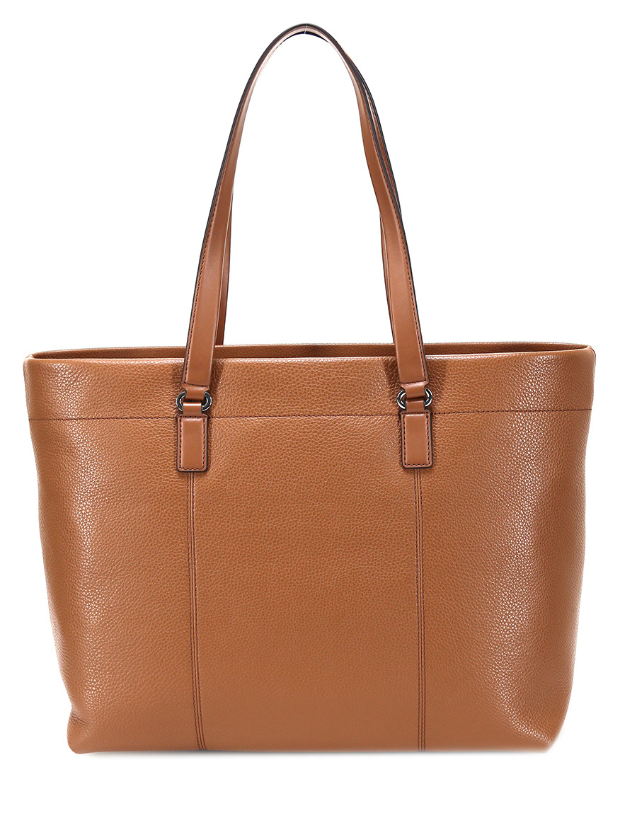 Strukturierte Ledertasche mit Reißverschluss. Misst 44 x 32 cm.
