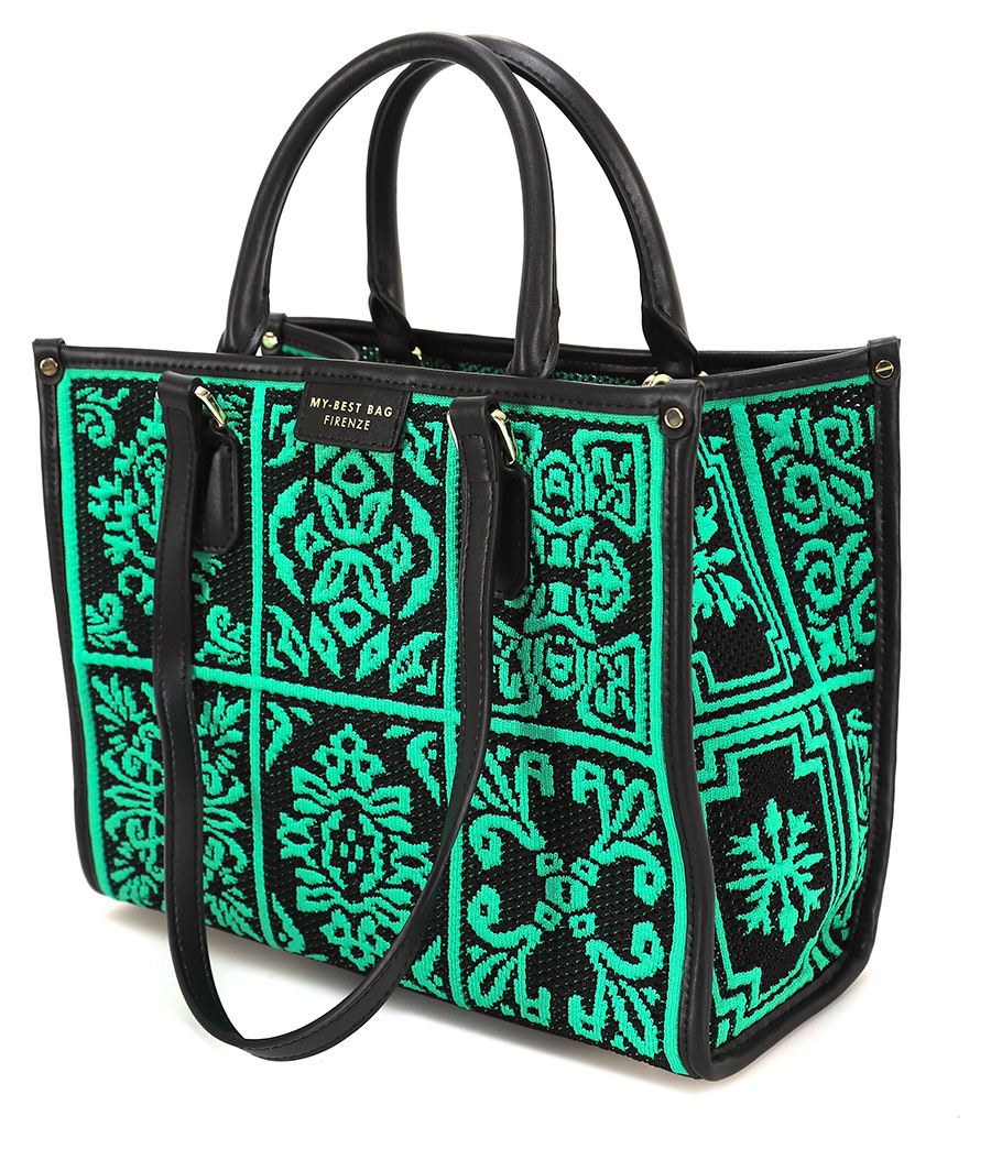 • Details: Logo, Taschenboden mit Stützen, Goldene Details, Bedruckte