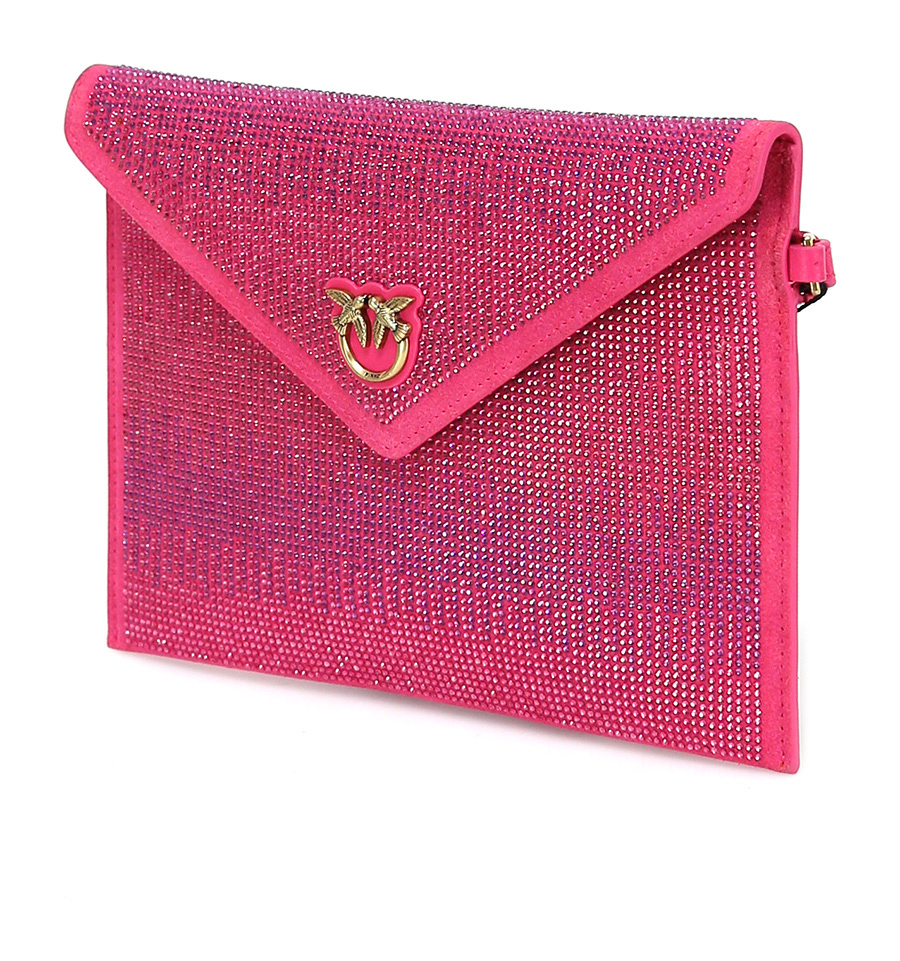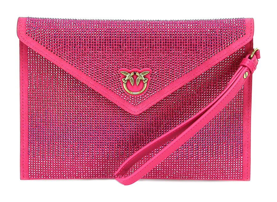 Tasche mit applizierten Strasssteinen und Magnetverschlussknopf. Inklusive Armband. Misst 24 x 18 cm.